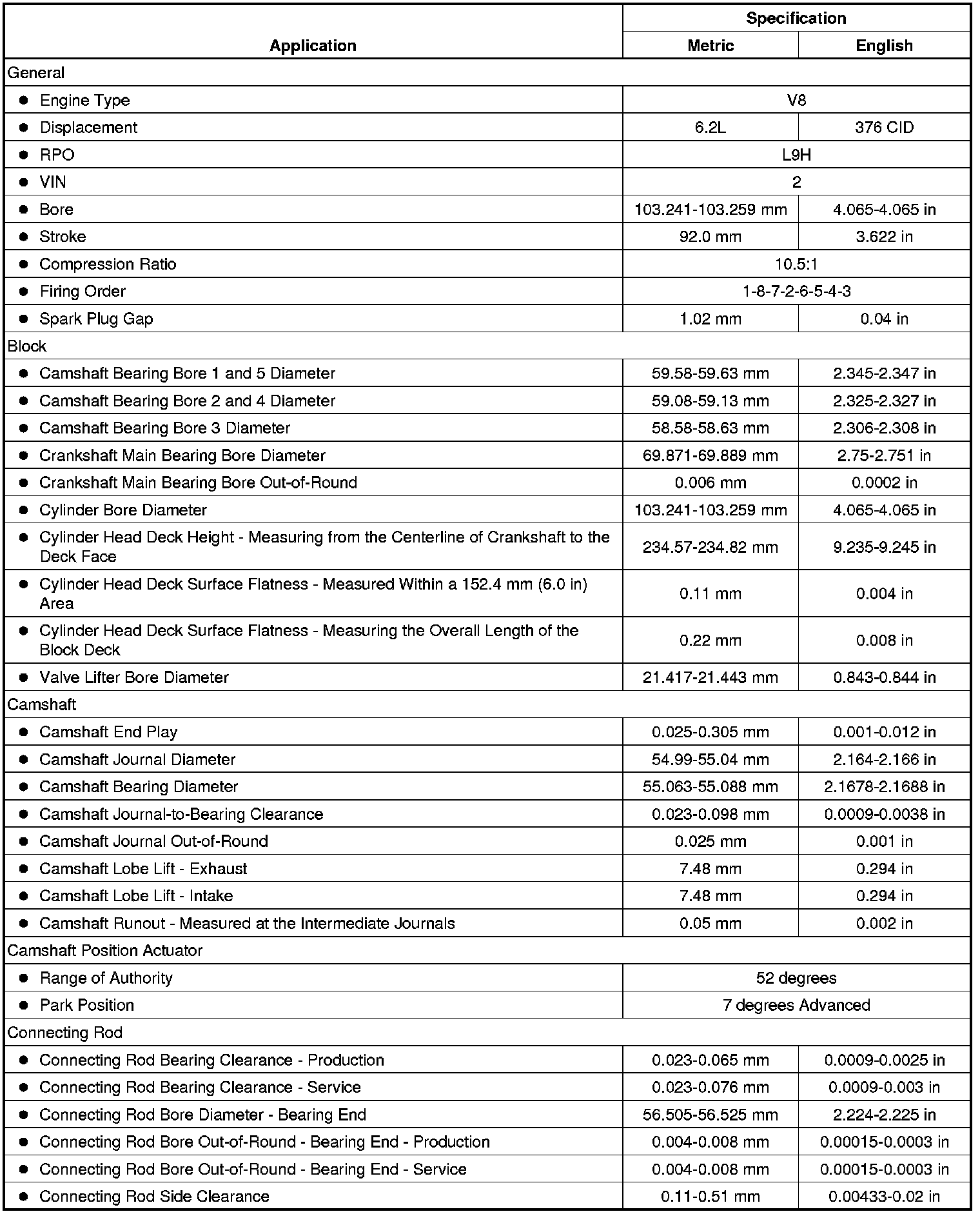 Engine Mechanical Specifications (RPO L9H VIN 2)
