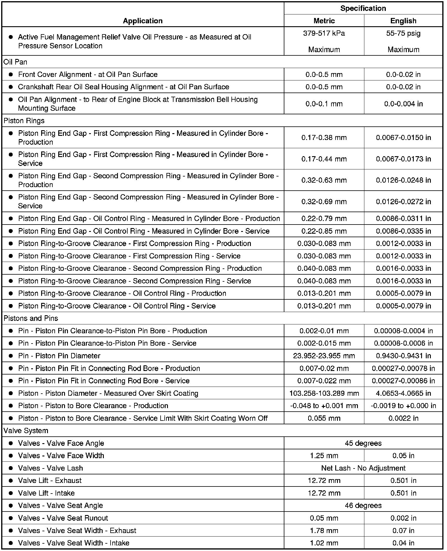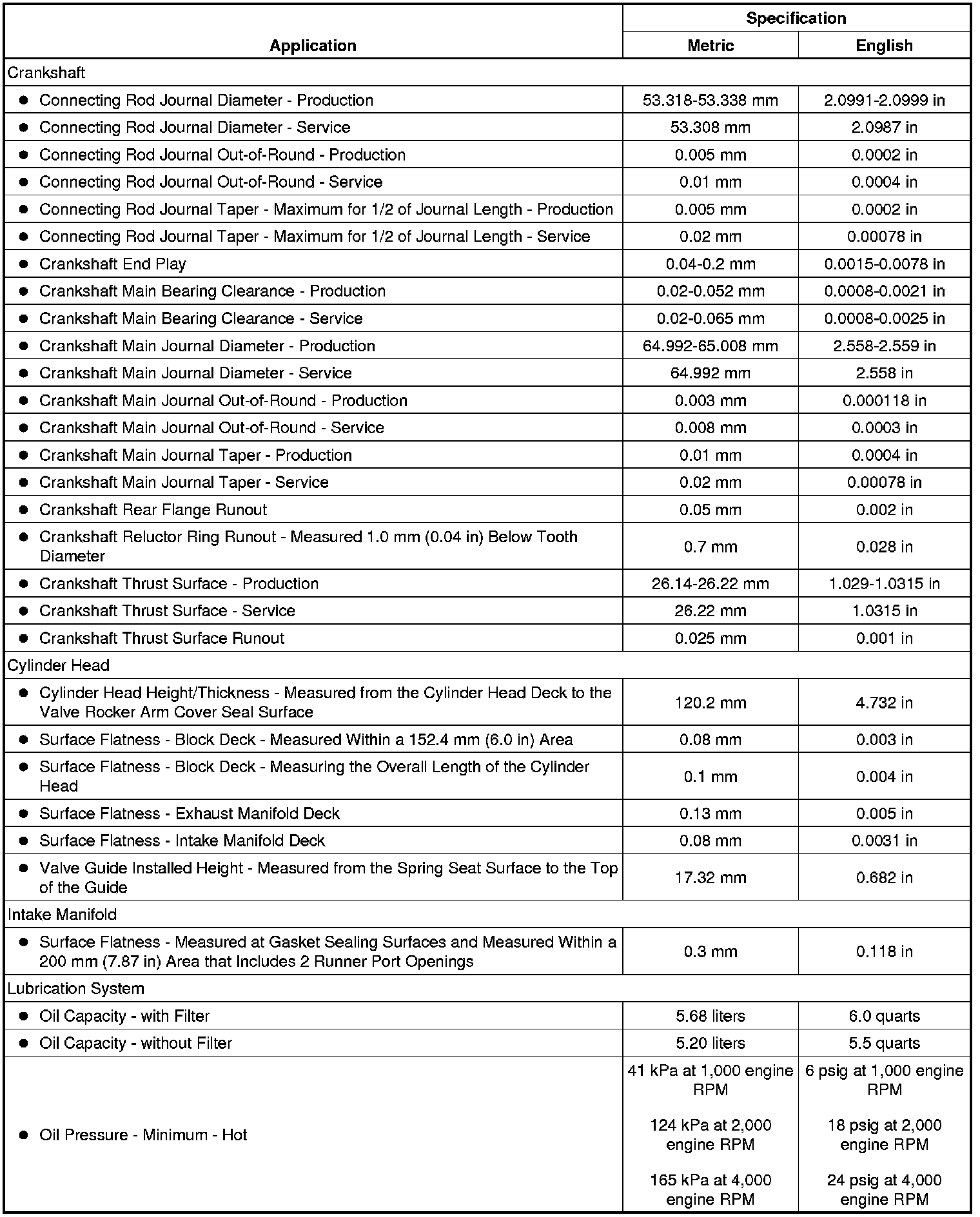 Engine Mechanical Specifications (RPO L9H)