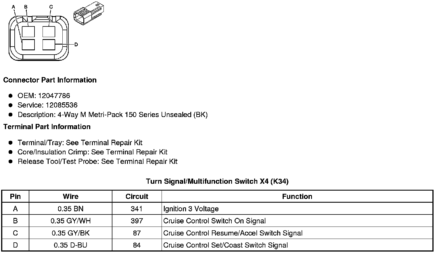 Turn Signal/Multifunction Switch X4 (K34)