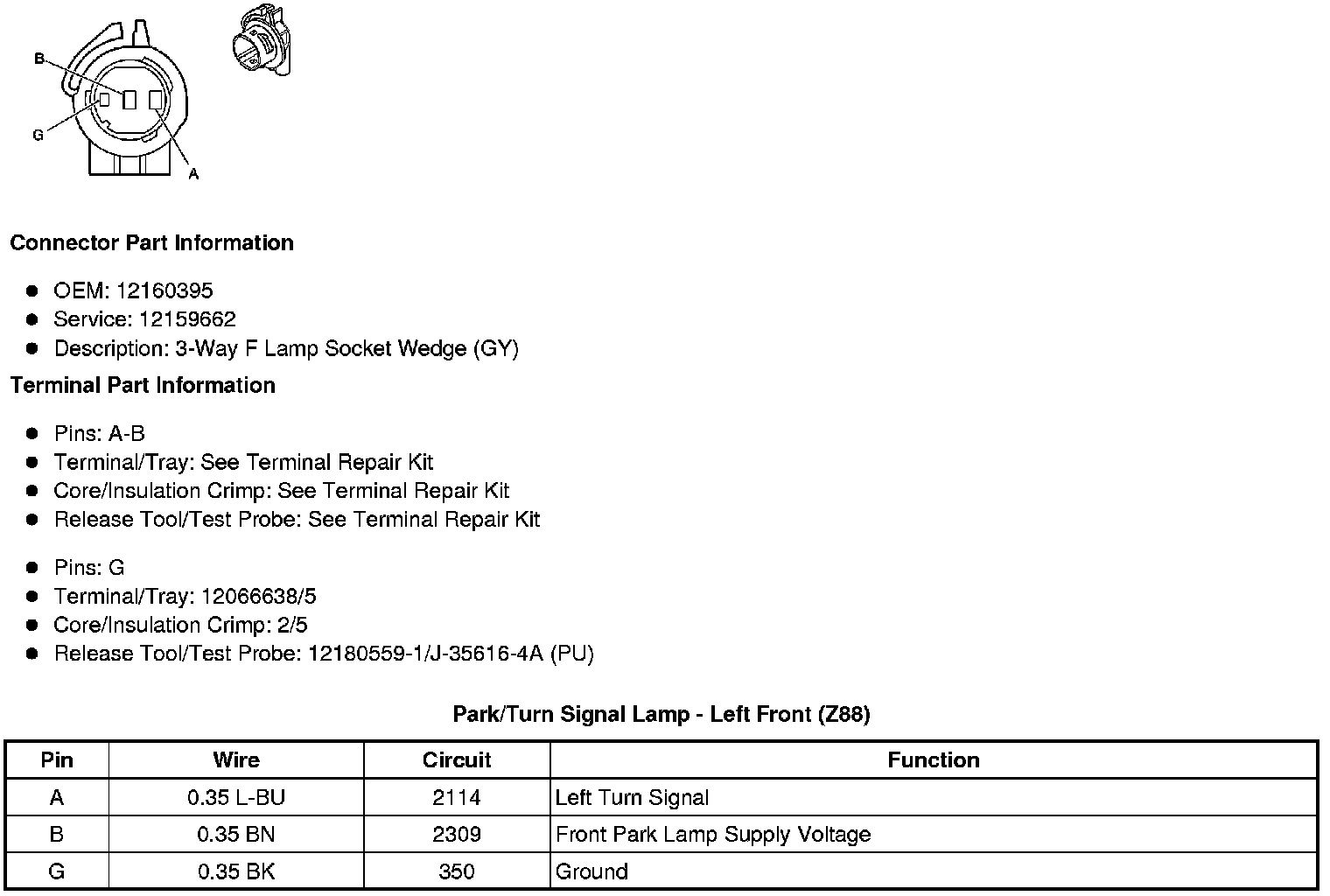 Park/Turn Signal Lamp - Left Front (Z88)