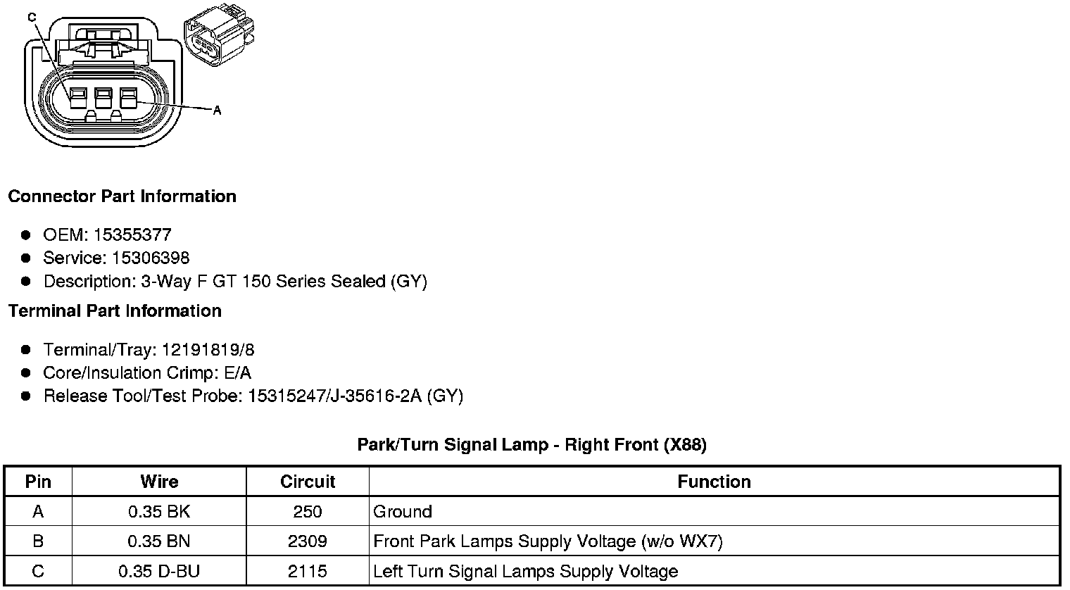 Park/Turn Signal Lamp - Right Front (X88)