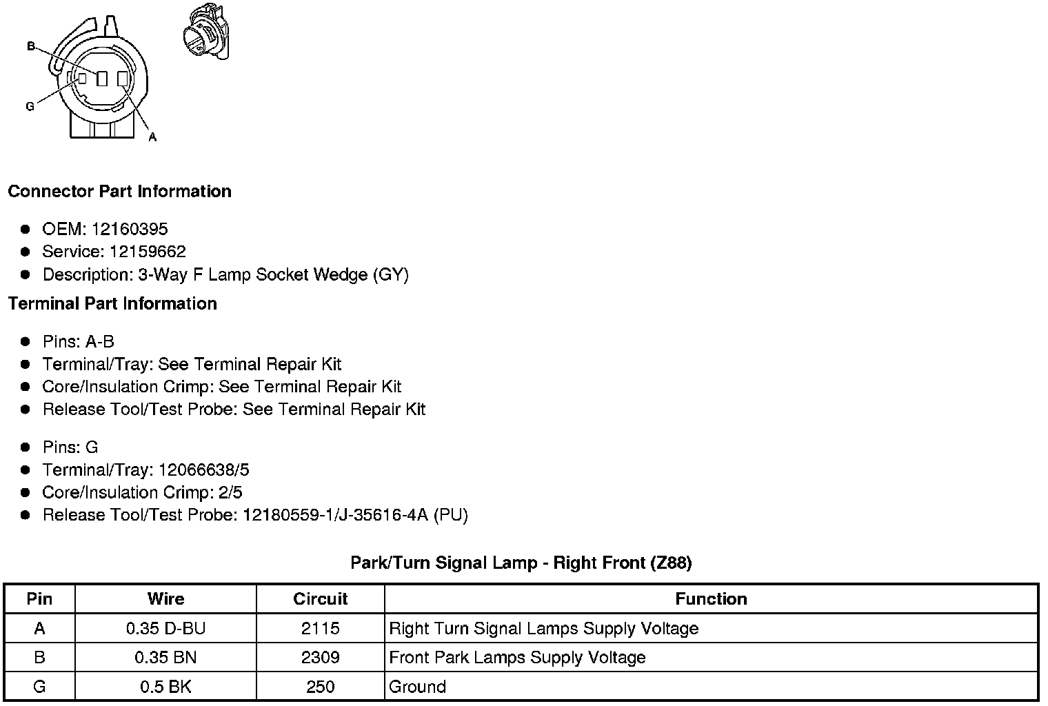 Park/Turn Signal Lamp - Right Front (Z88)