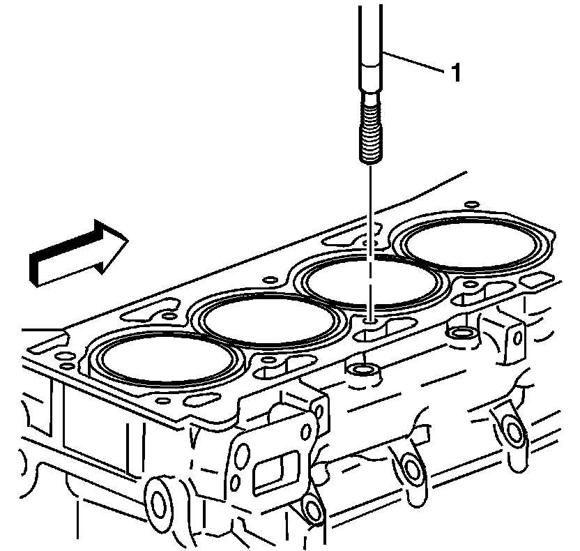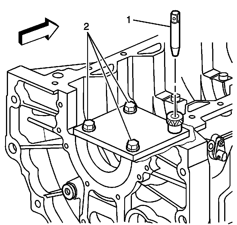 3. Position the alignment pin (1) through the bushing and into the crankshaft main cap bolt hole.