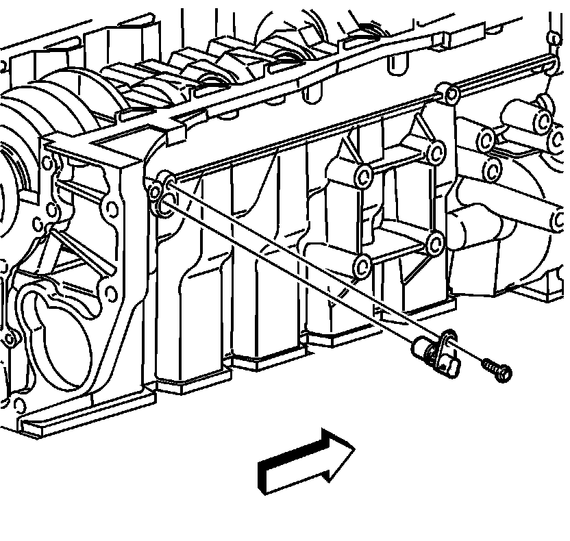 9. Add sealer GM P/N 12346004 (Canadian P/N 10953480) to the crankshaft position sensor bolt.