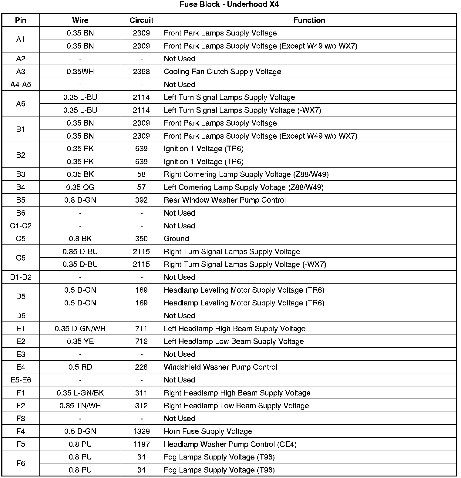 Fuse Block - Underhood, Bottom View