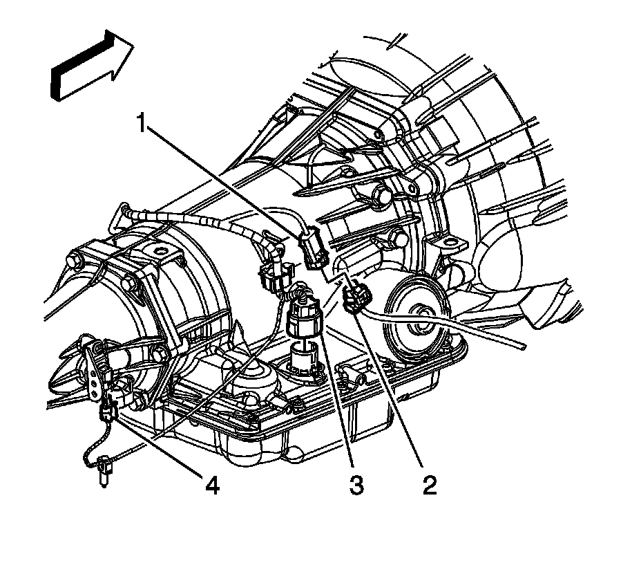 2. Disconnect the heated oxygen sensor (HO2S) electrical connector (2) from the engine wiring harness electrical connector (1).
