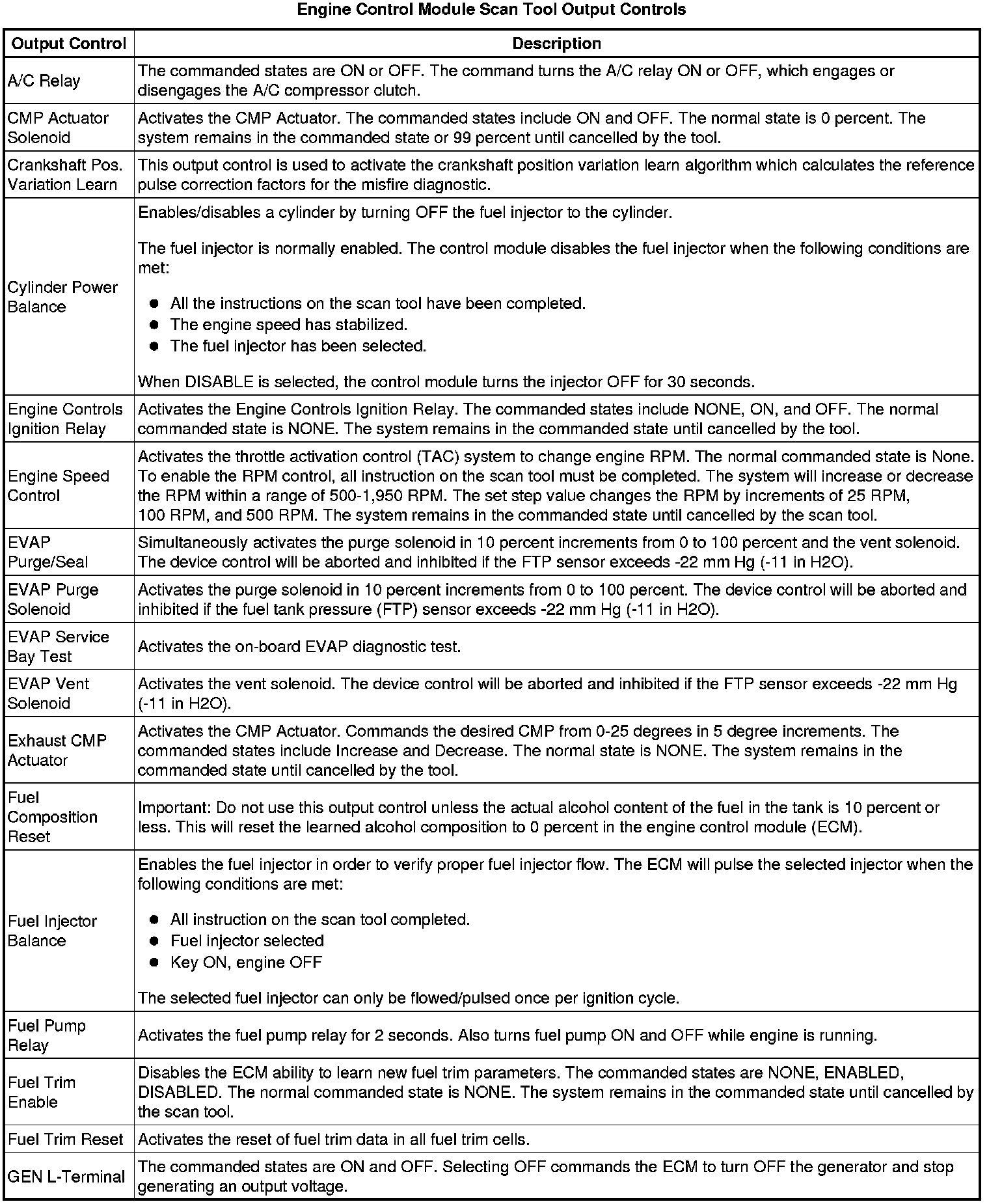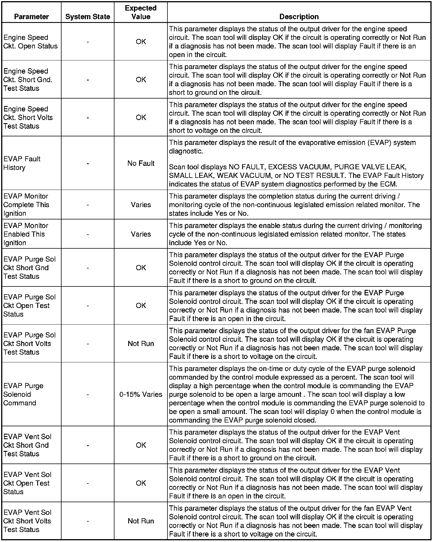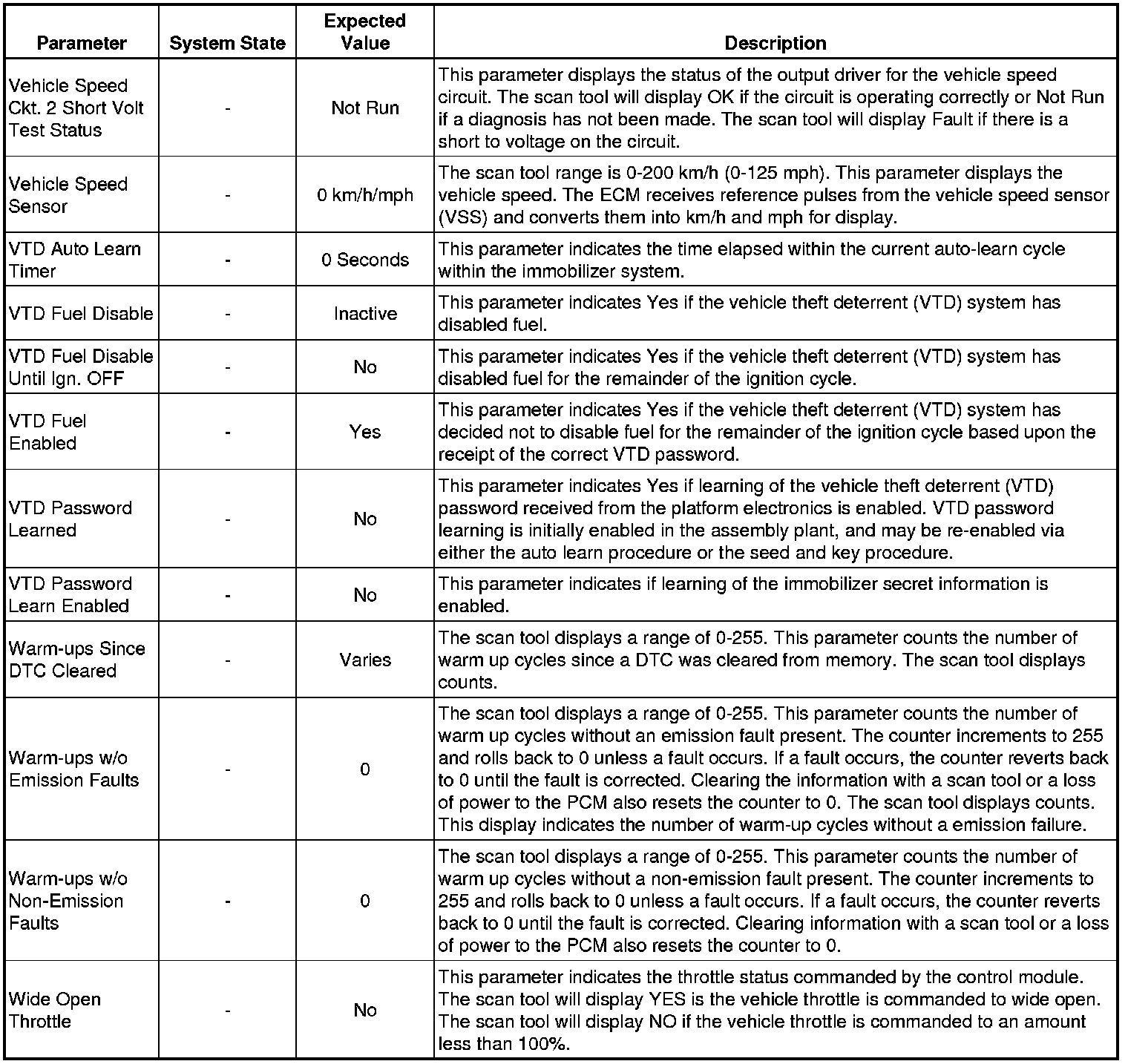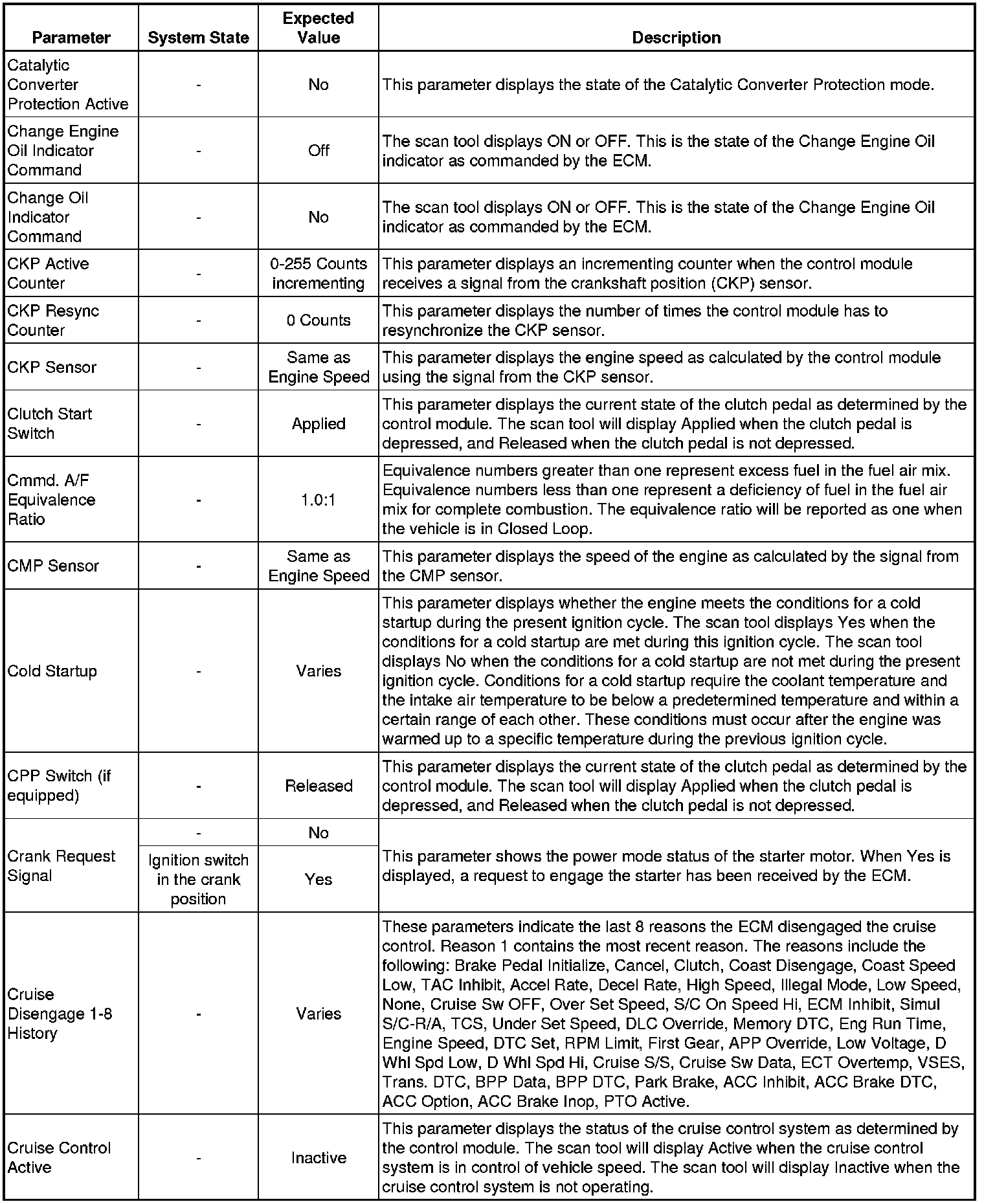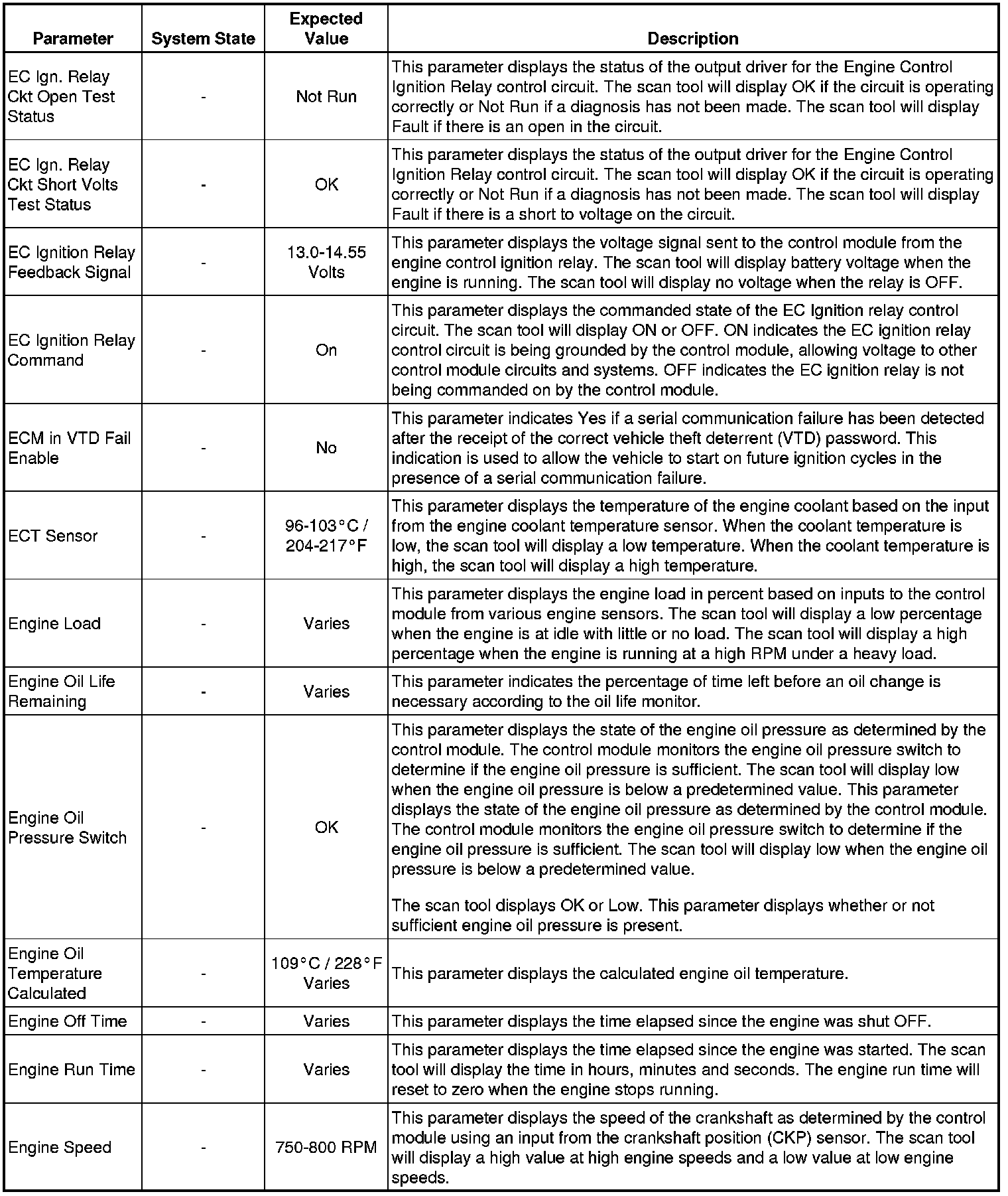 The Engine Control Module Scan Tool Data List contains all engine-related parameters that are available on the scan tool. The list is arranged in alphabetical order. A given parameter may appear in any one of the data lists, and in some cases may appear more than once, or in more than one data list in order to group certain related parameters together.