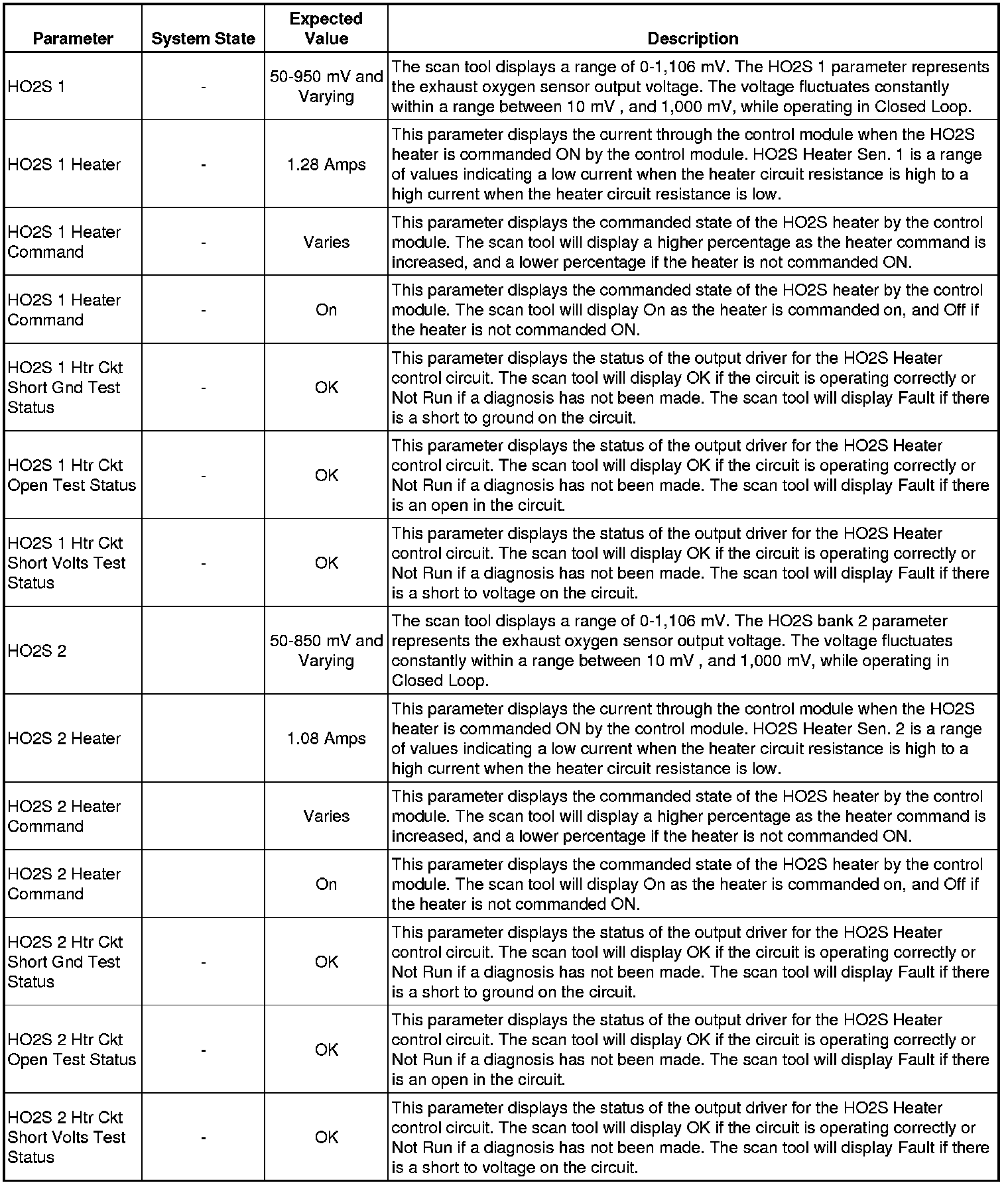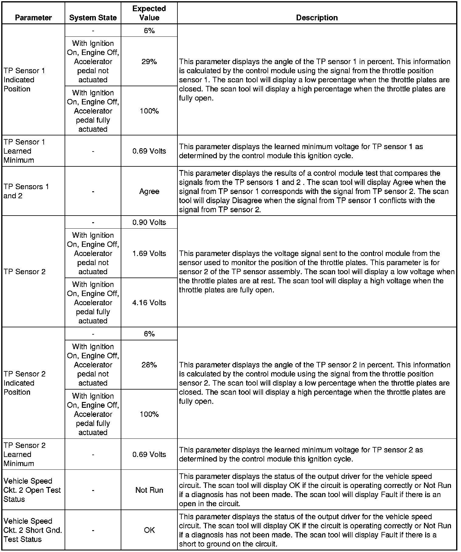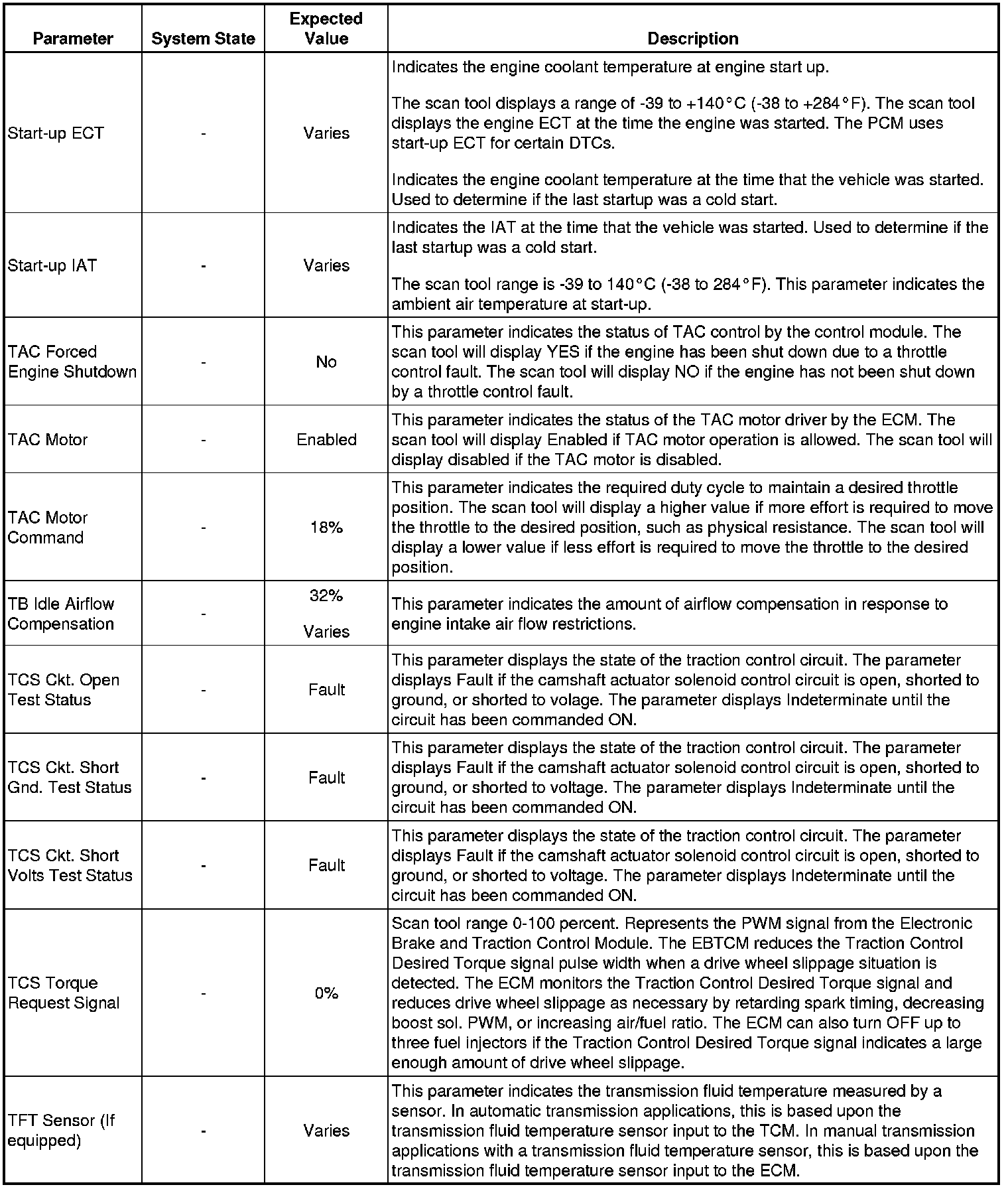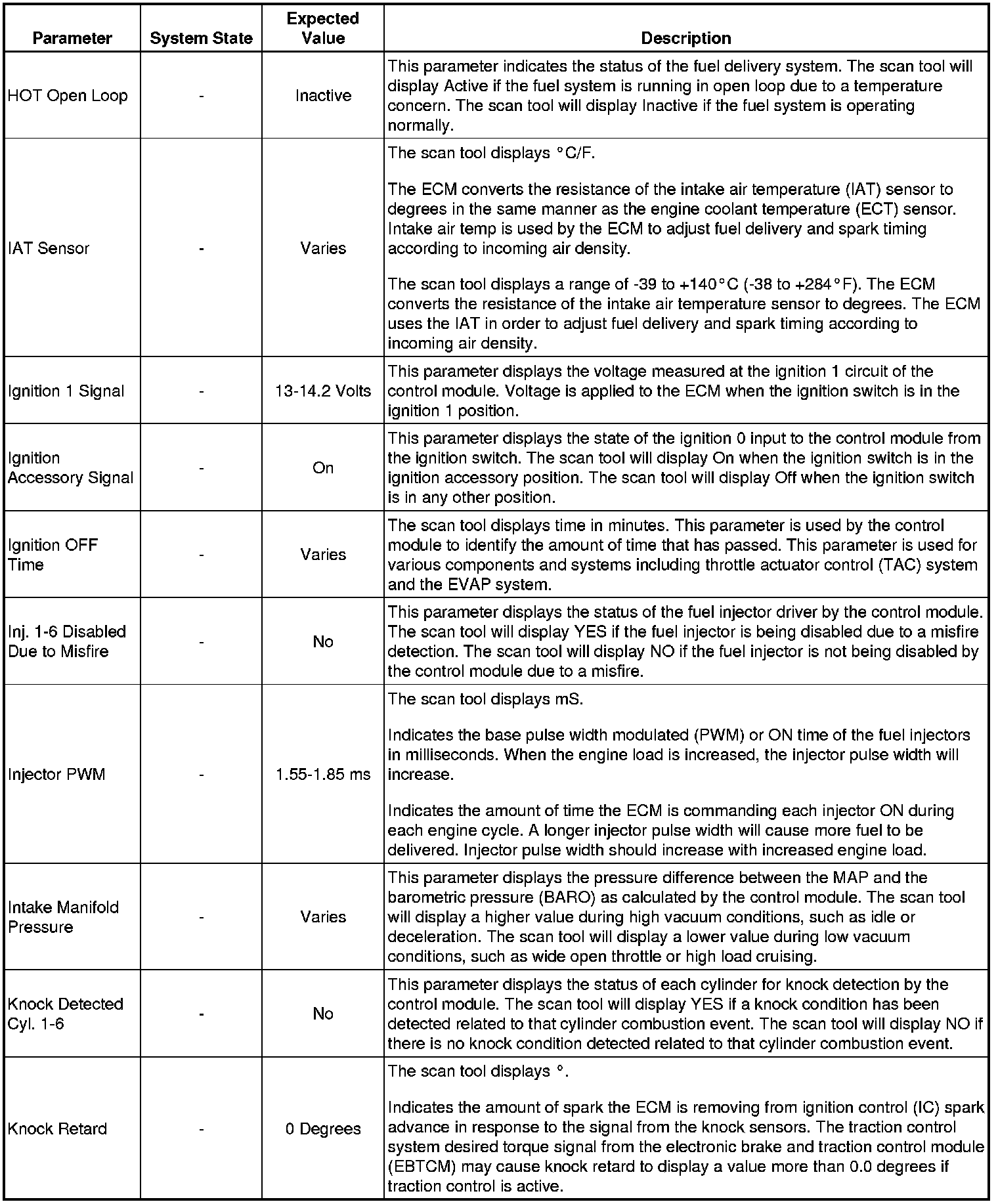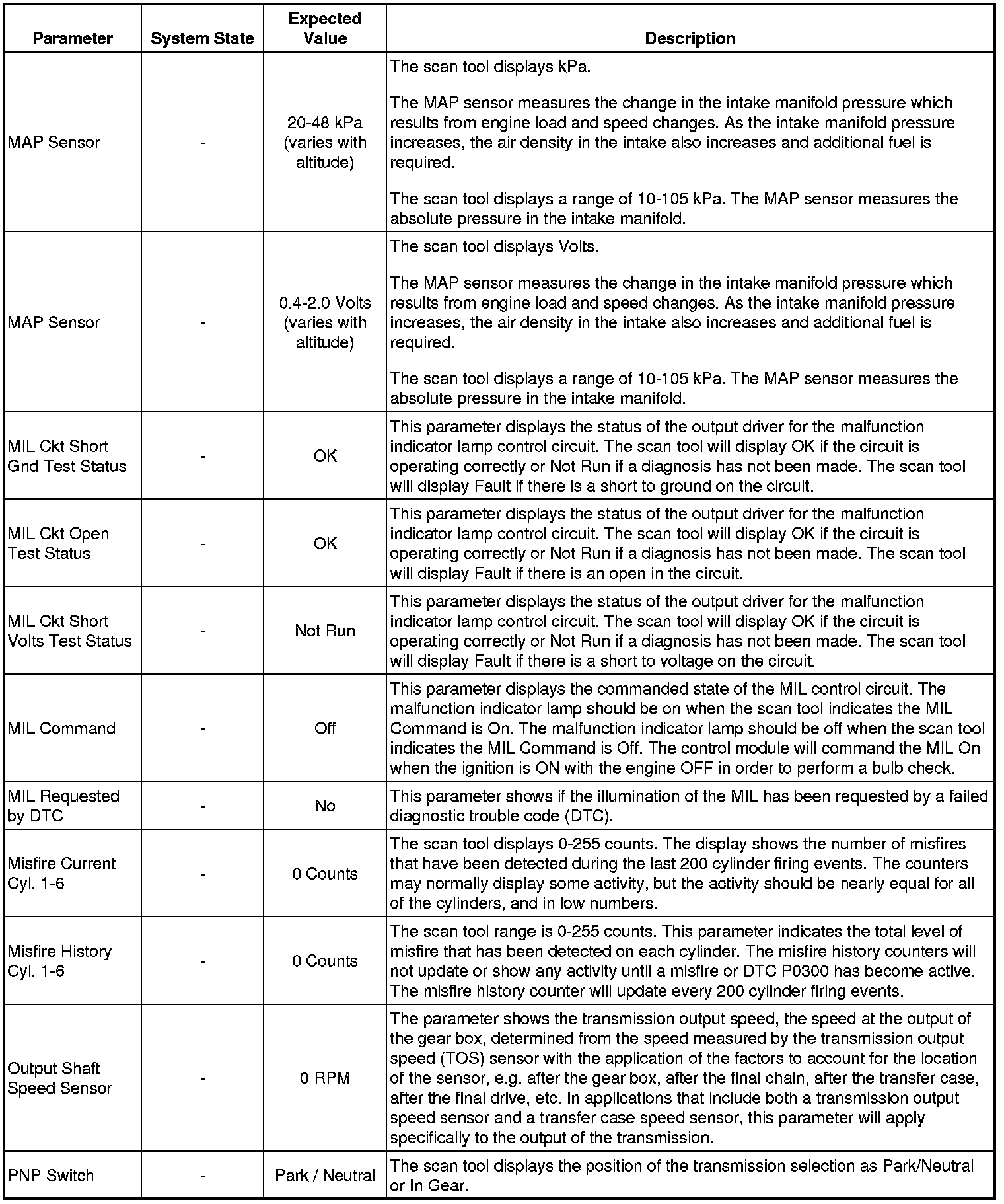 Only the parameters listed below are referenced in this service manual for use in diagnosis. If all values are within the typical range described below, refer to Symptoms - Engine Controls (- Symptoms - Engine Controls) for the 4.2L engine for diagnosis.