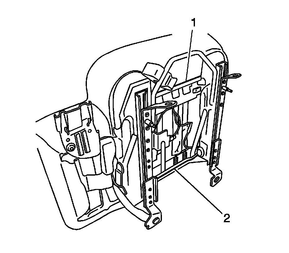 5. Remove the screws (2) that retain the lumbar adjustment mechanism (1) to the seat adjuster.