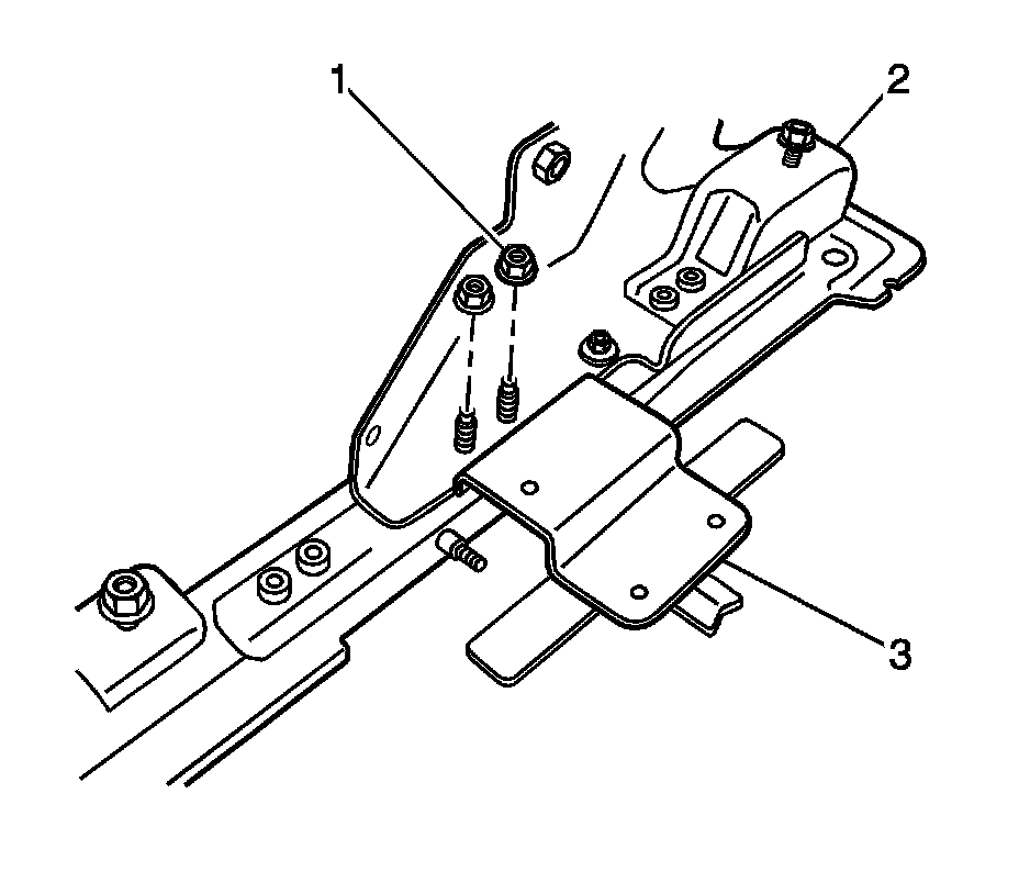 16. Remove the 2 nuts (1) securing the seat position switch (3) to the seat adjuster (2).