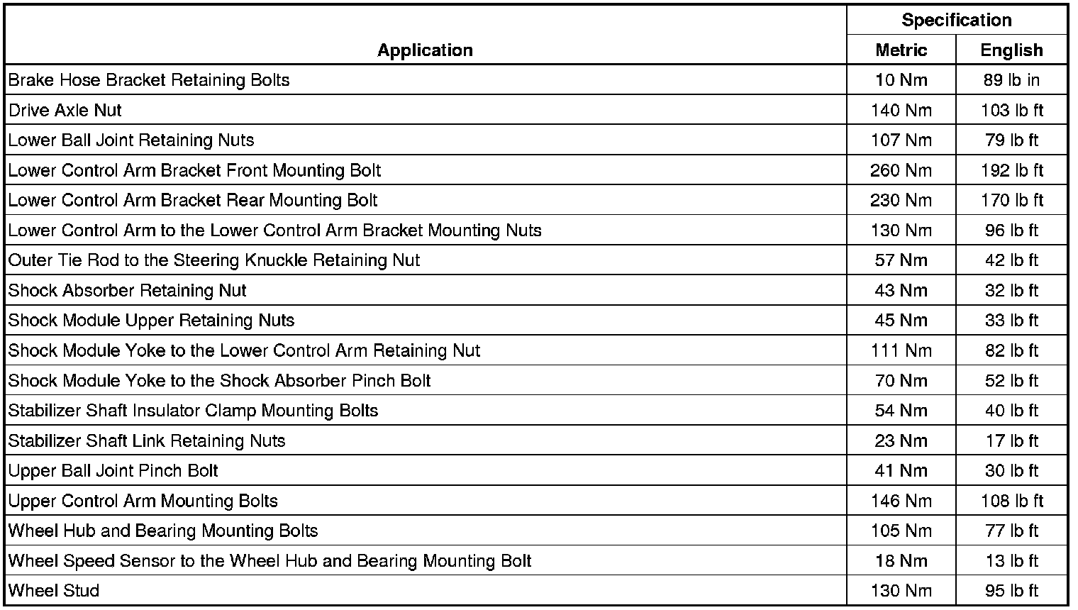Fastener Tightening Specifications