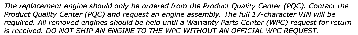 2. Contact the Product Quality Center (PQC) and request an engine. The full 17-character VIN, and the 08328 bulletin reference number will be required when ordering.