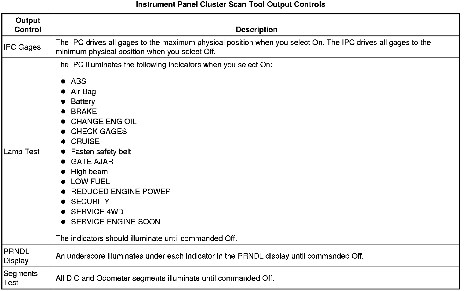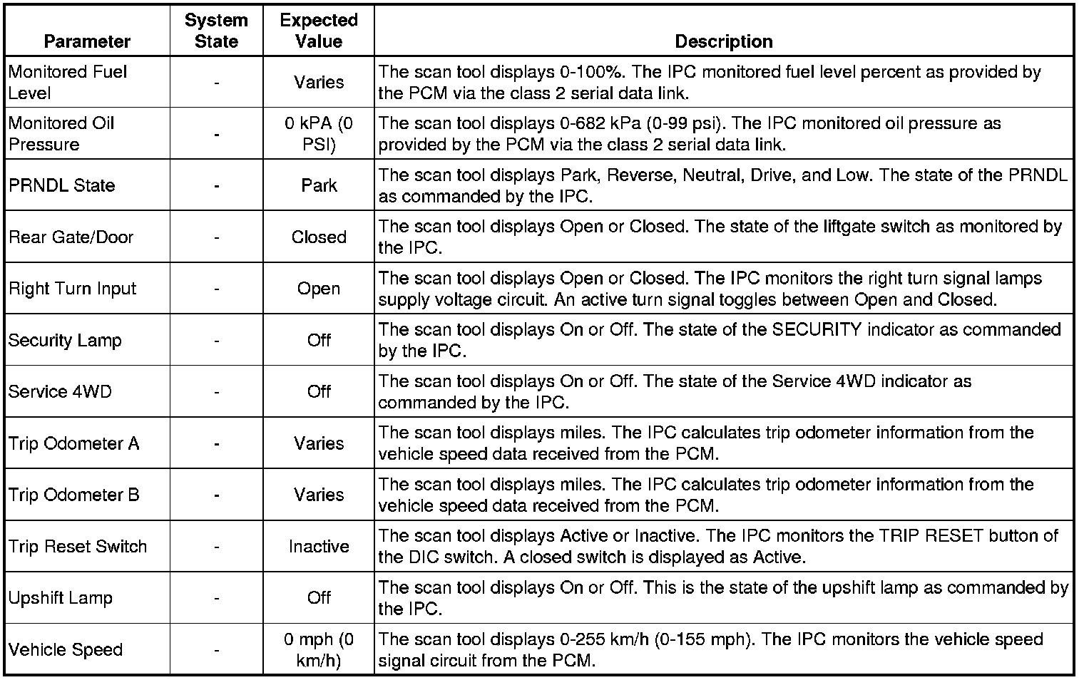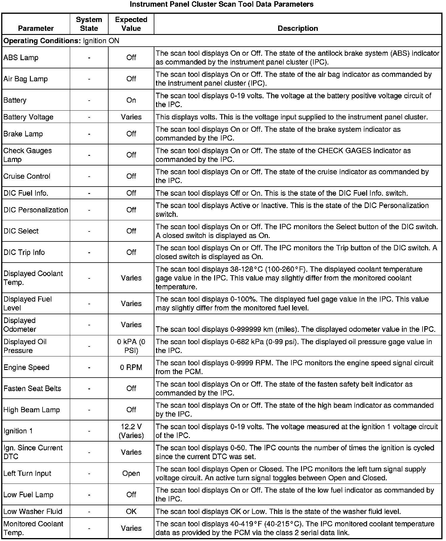 Instrument Cluster Scan Tool Information