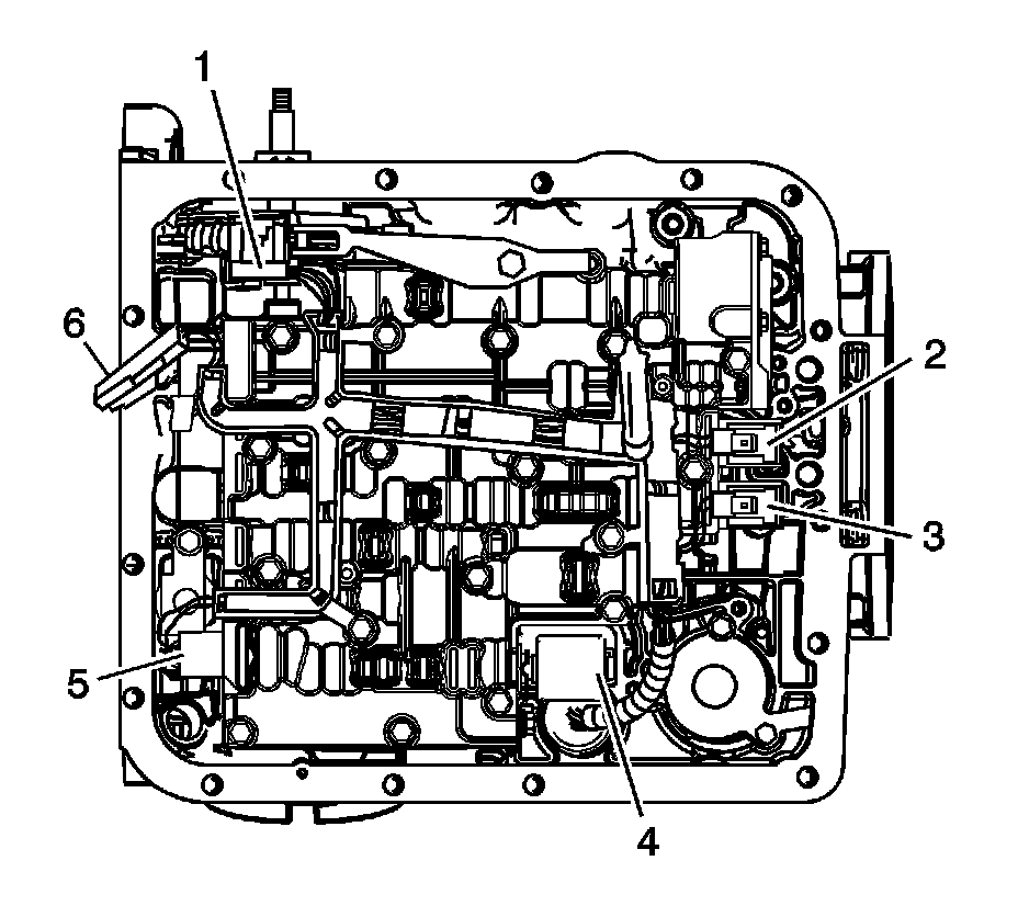 6. Remove the TCC PWM solenoid (1) in order to access the TCC solenoid retaining bolts.
