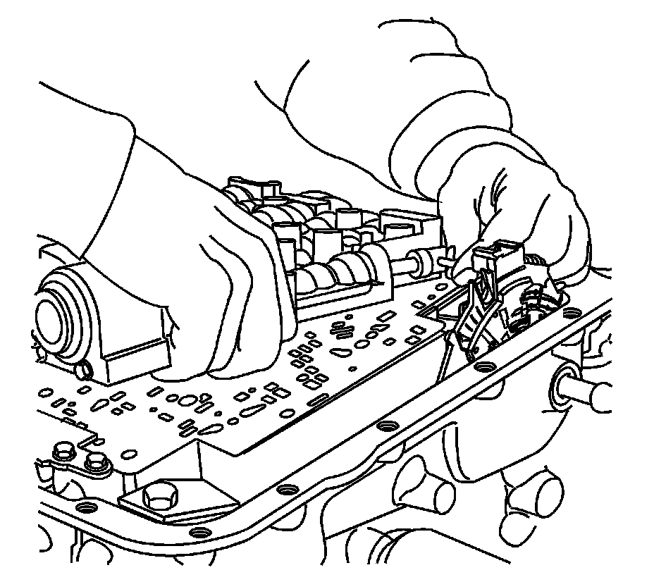 3. Remove the oil pan, gasket, and filter. Refer to Automatic Transmission Fluid and Filter Replacement (Removal and Replacement).