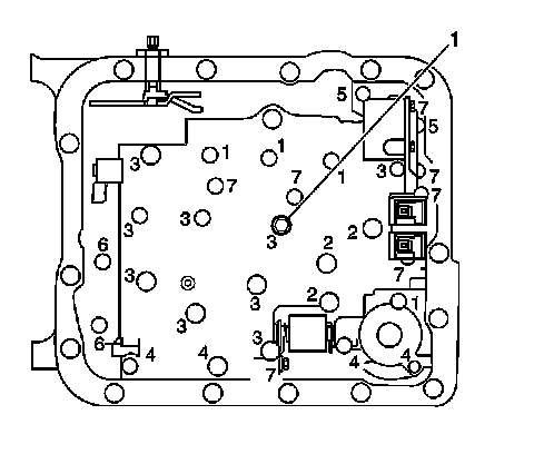 9. Inspect the ensure all of the valve body bolts are in the correct location. Each bolt number refers to a specific size, as indicated in the following list:
