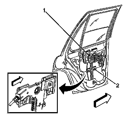 1. Remove the door trim panel. Refer to Rear Side Door Trim Panel Replacement (Service and Repair).