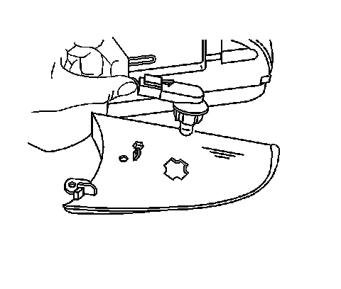 1. Carefully move the outside rear view mirror (ORVM) assembly forward in order to gain access to the lens retaining screw (1) located underneath the assembly, near the pivot point.