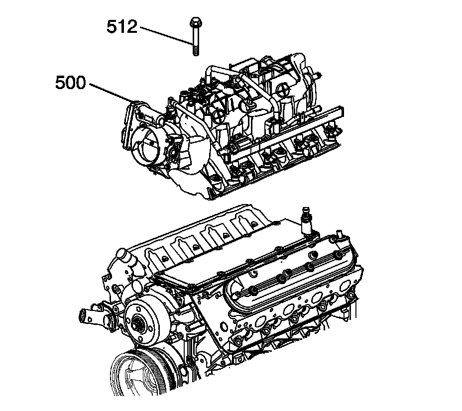 3. Apply a 5 mm (0.2 in) bead threadlock to the threads of the intake manifold bolts (512). Refer to Adhesives, Fluids, Lubricants, and Sealers (Specifications).