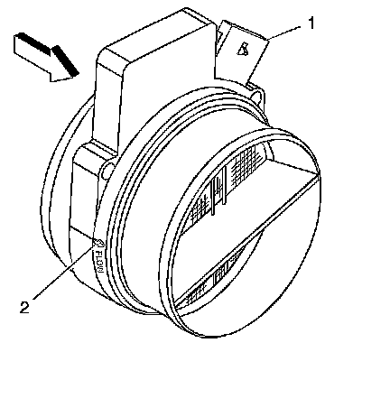 1. Locate the air flow direction arrow (2) on the MAF/IAT sensor.