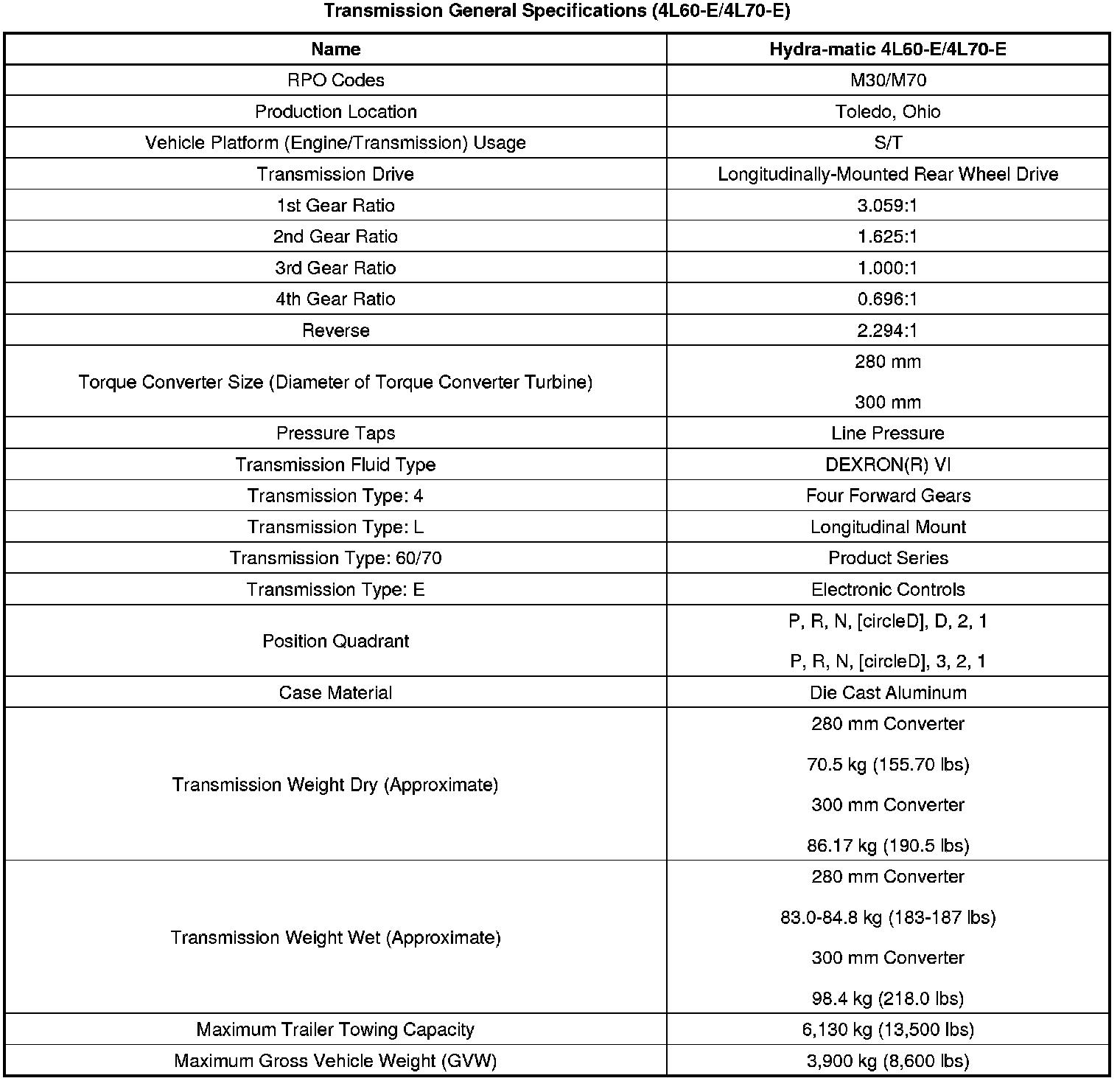 Transmission General Specifications