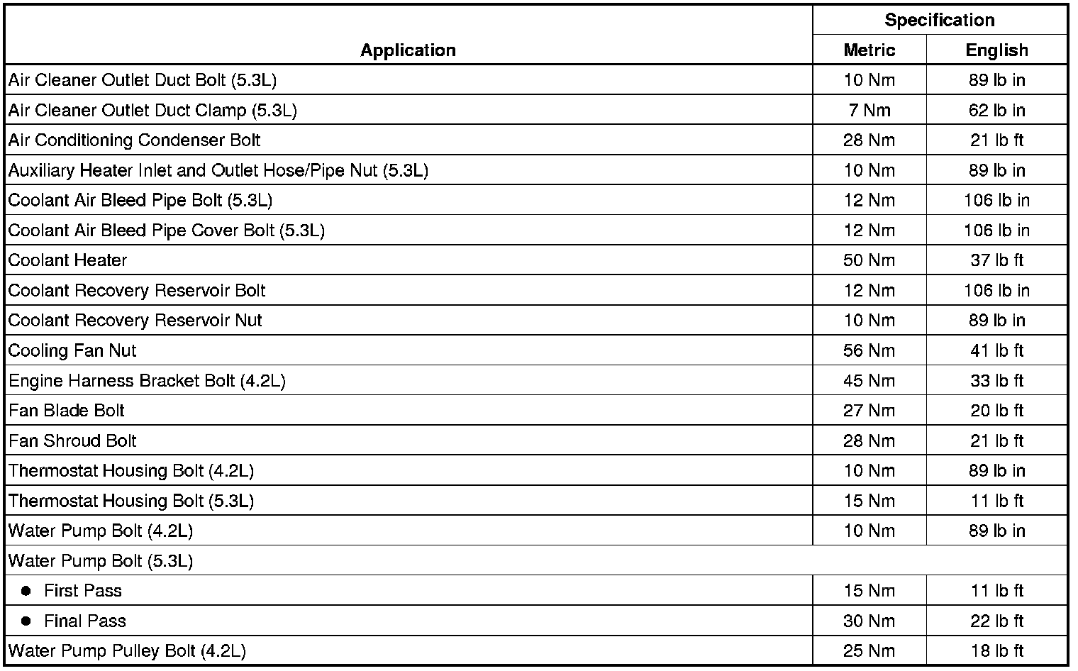 Fastener Tightening Specifications