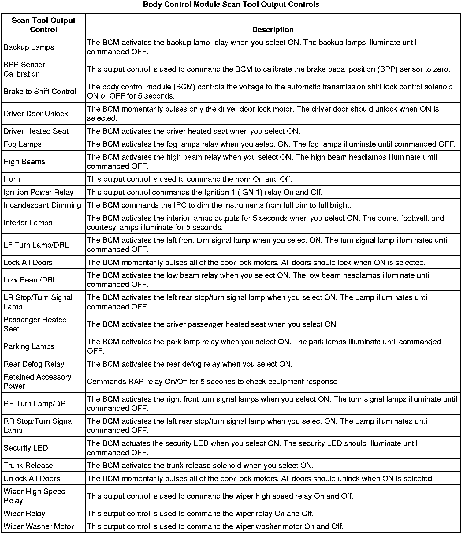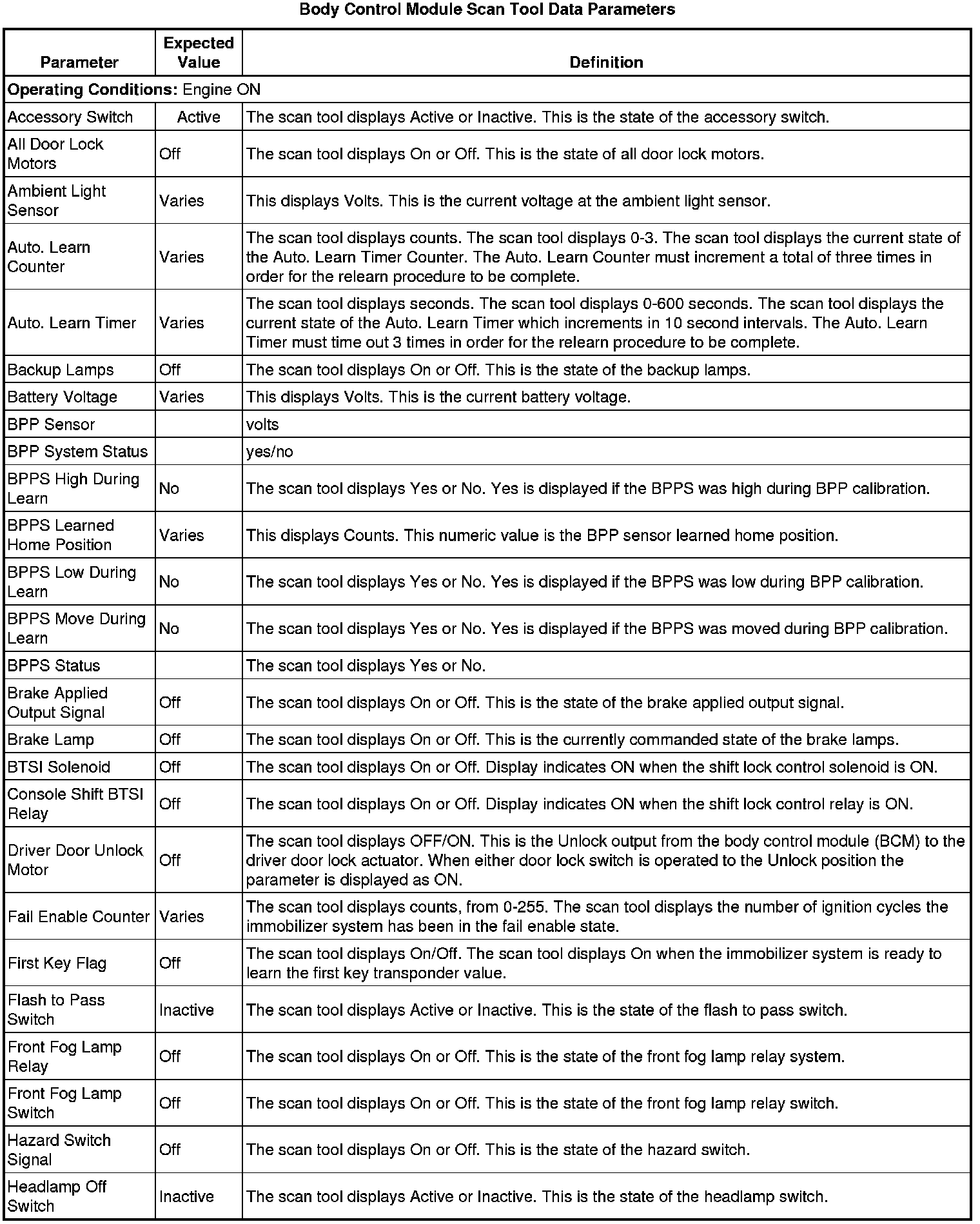 Body Control Systems: Testing and Inspection