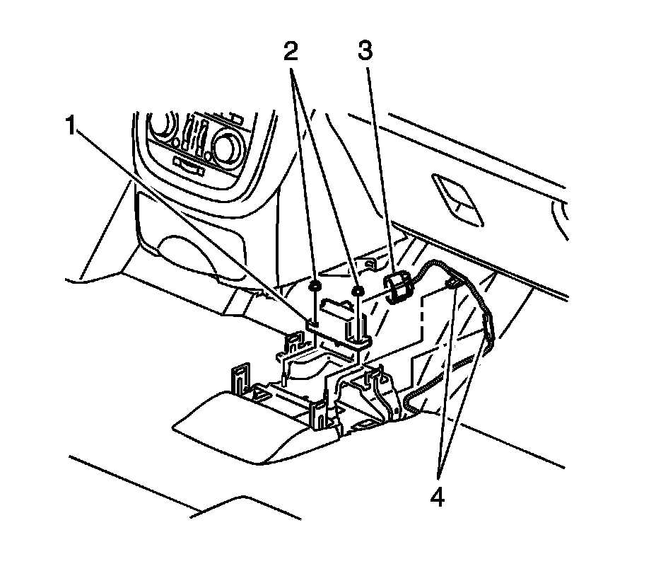 4. Install the front floor console bracket assembly. Refer to Front Floor Console Bracket Assembly Replacement Front Floor Console Bracket Assembly Replacement.