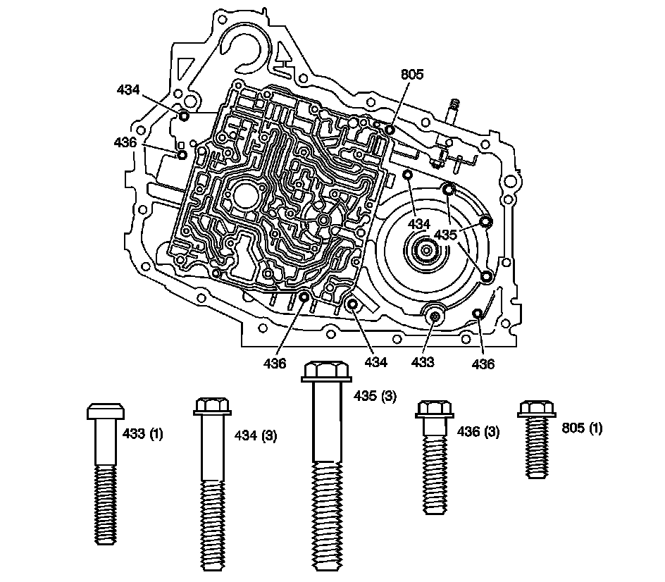 Bottom Pan, Accumulator Cover and Manual 2-1 Band Servo Cover Bolts