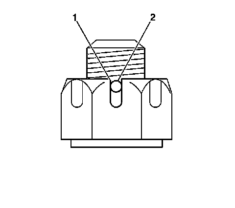 77. If necessary, tighten the castle nut in order to align the nut slot (1) to the cotter pin hole (2) as shown.