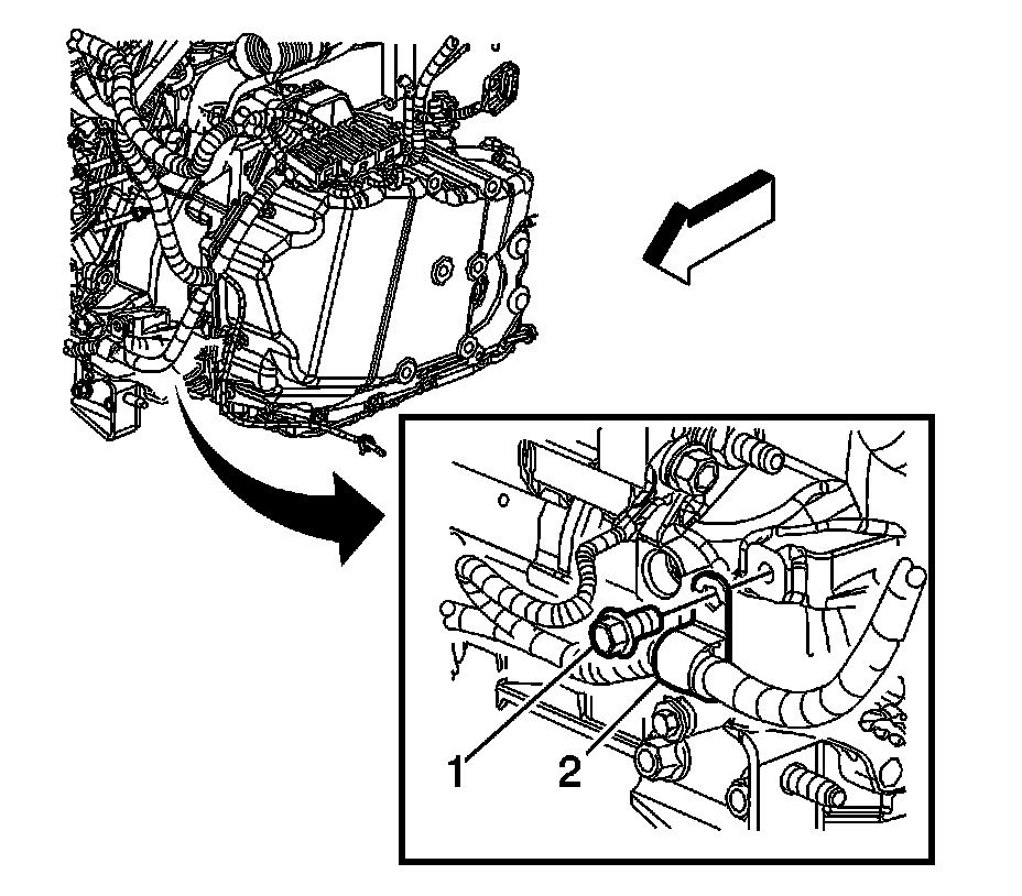59. Install the engine harness ground nuts (1, 2) to the transaxle studs. Tighten the nuts to 25 Nm (18 lb ft).