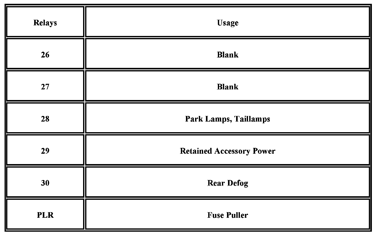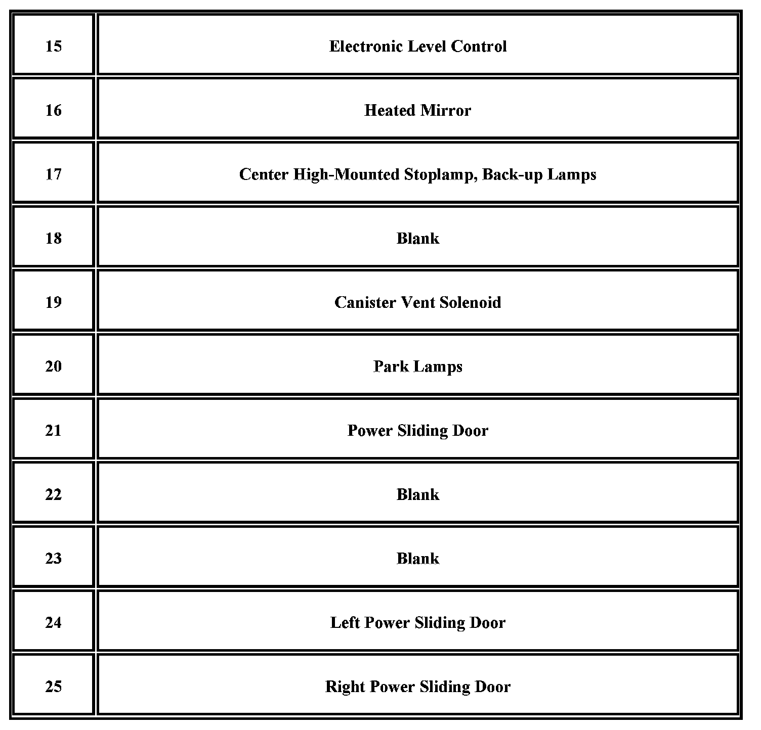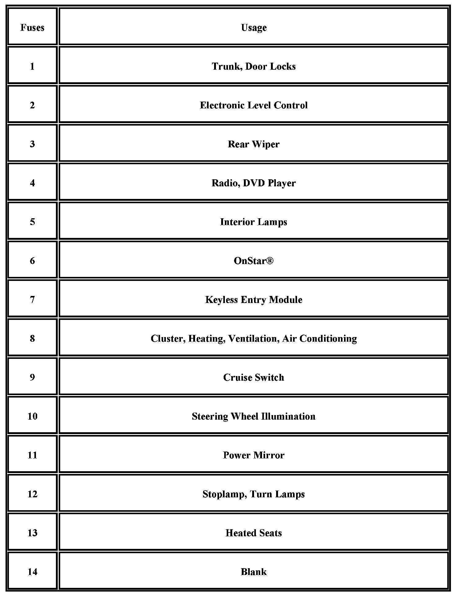 Your vehicle may not have all of the fuses listed.