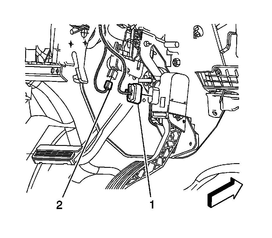 3. Disconnect the instrument panel (I/P) harness electrical connector (1) from the accelerator pedal.