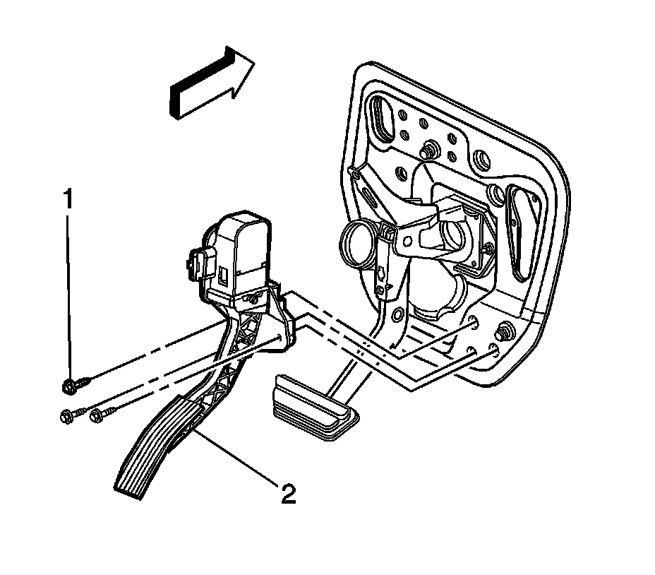 1. Install the accelerator pedal (2).
