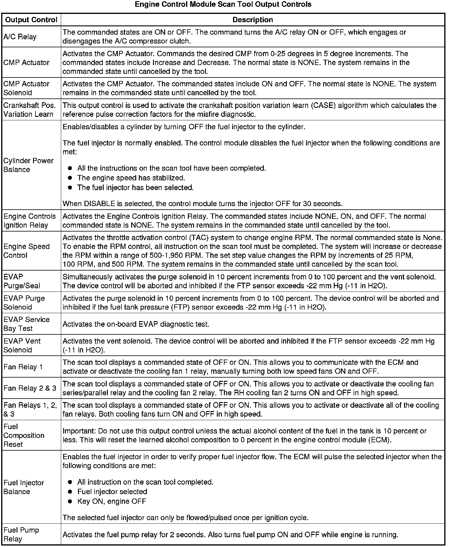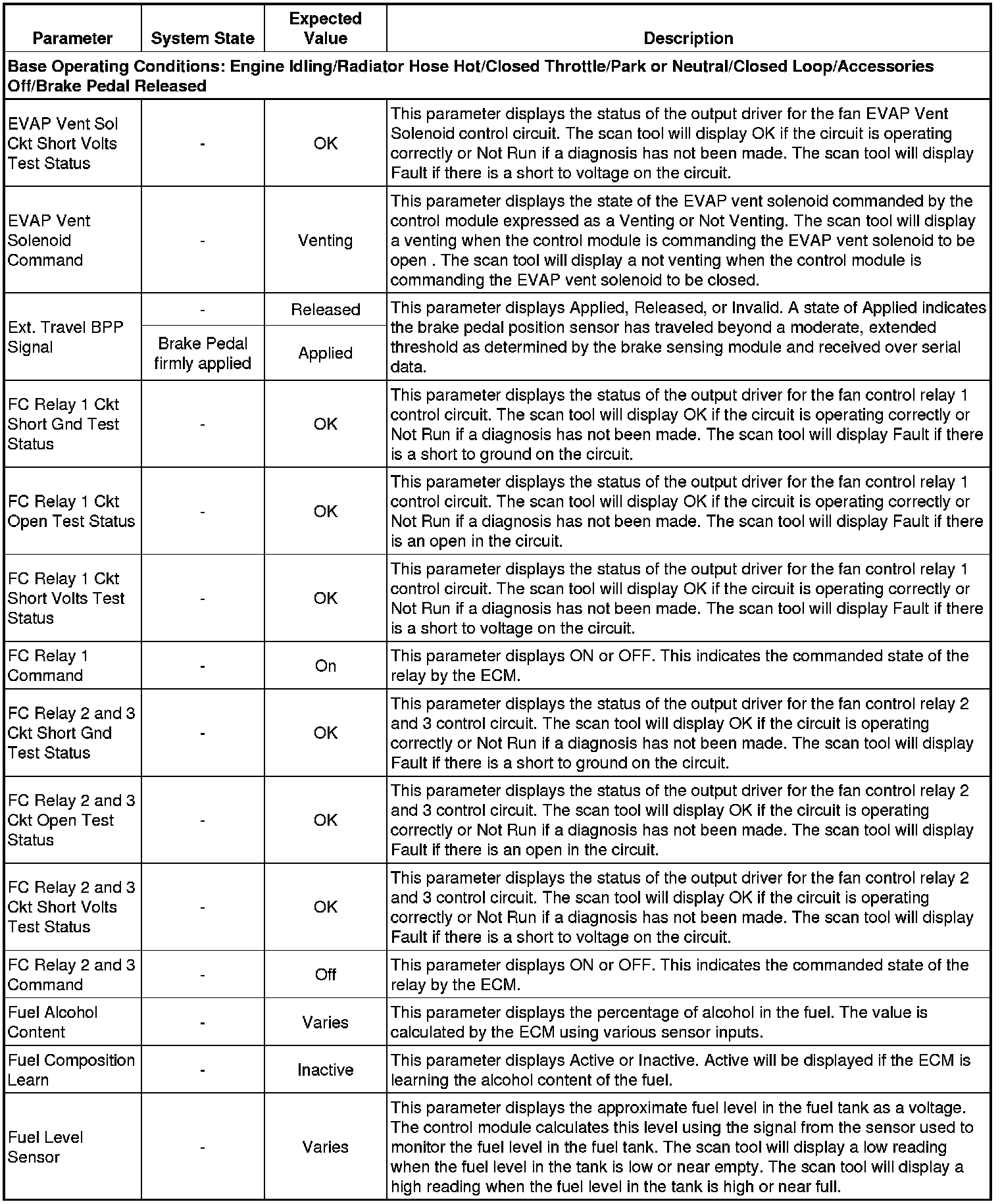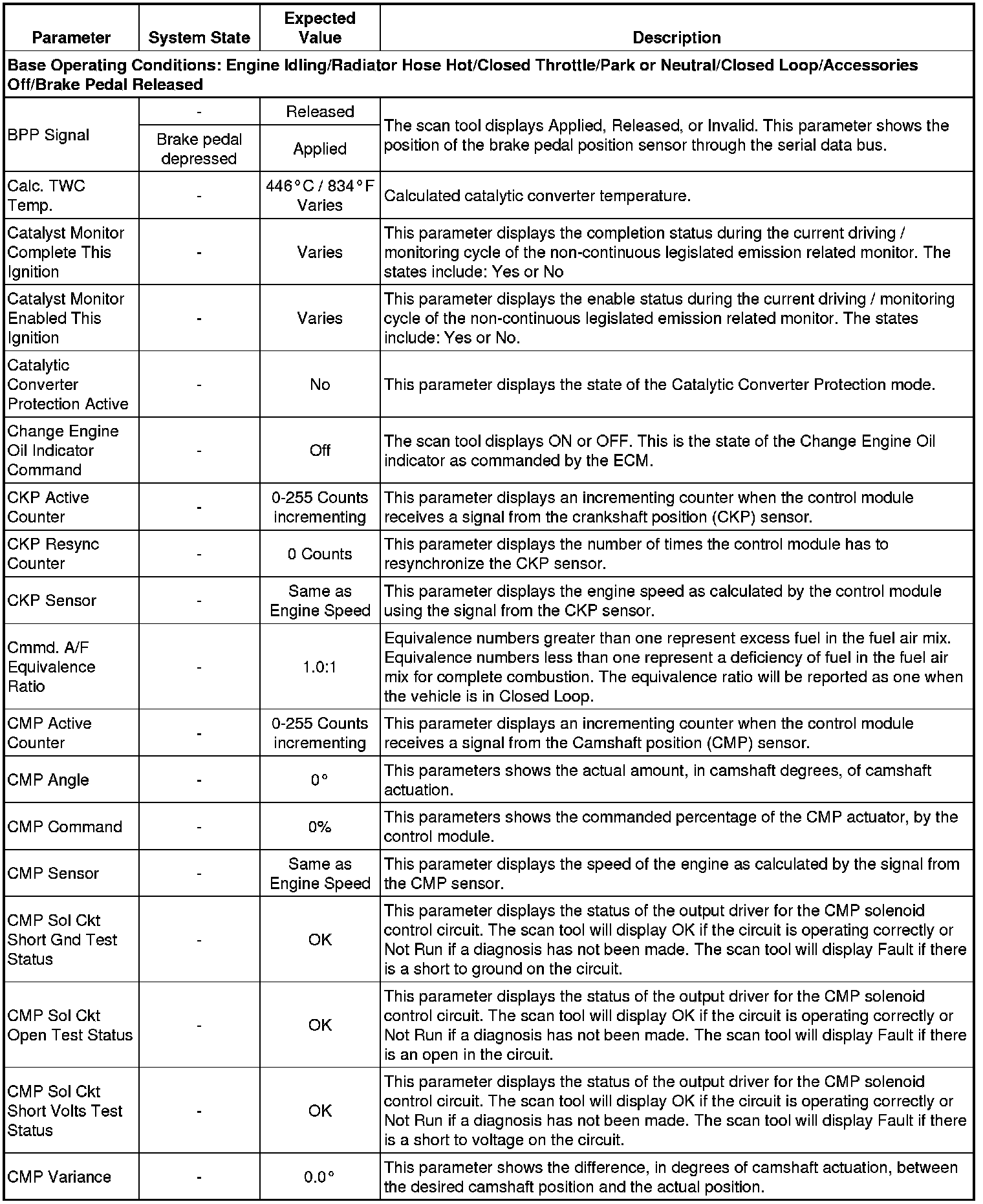 The Engine Control Module Scan Tool Data List contains all engine-related parameters that are available on the scan tool. The list is arranged in alphabetical order. A given parameter may appear in any one of the data lists, and in some cases may appear more than once, or in more than one data list in order to group certain related parameters together.