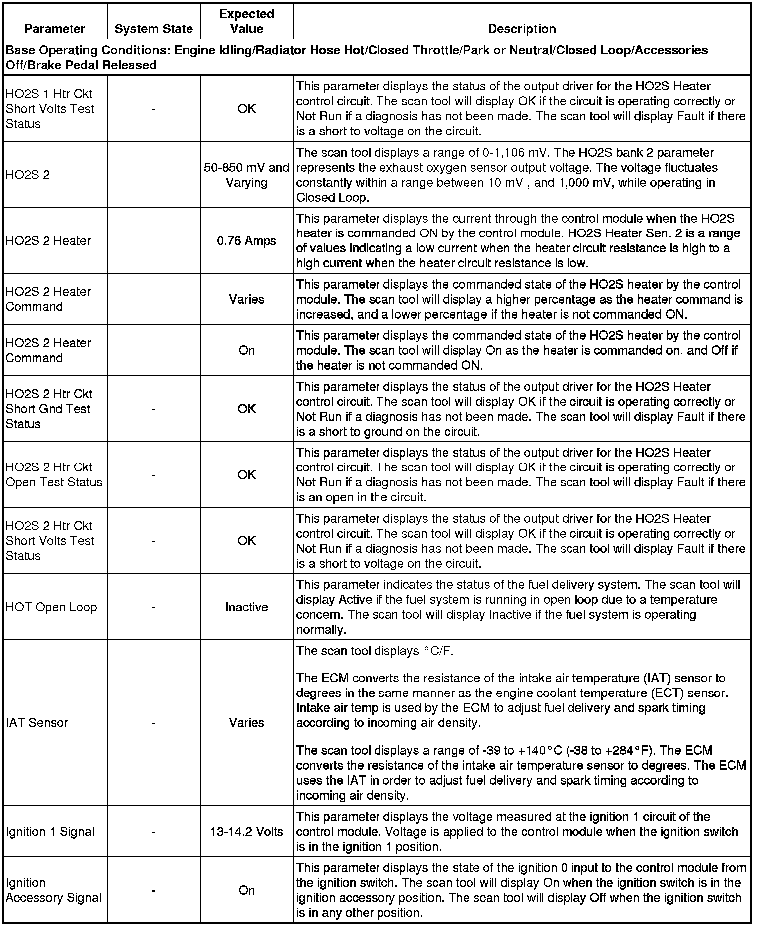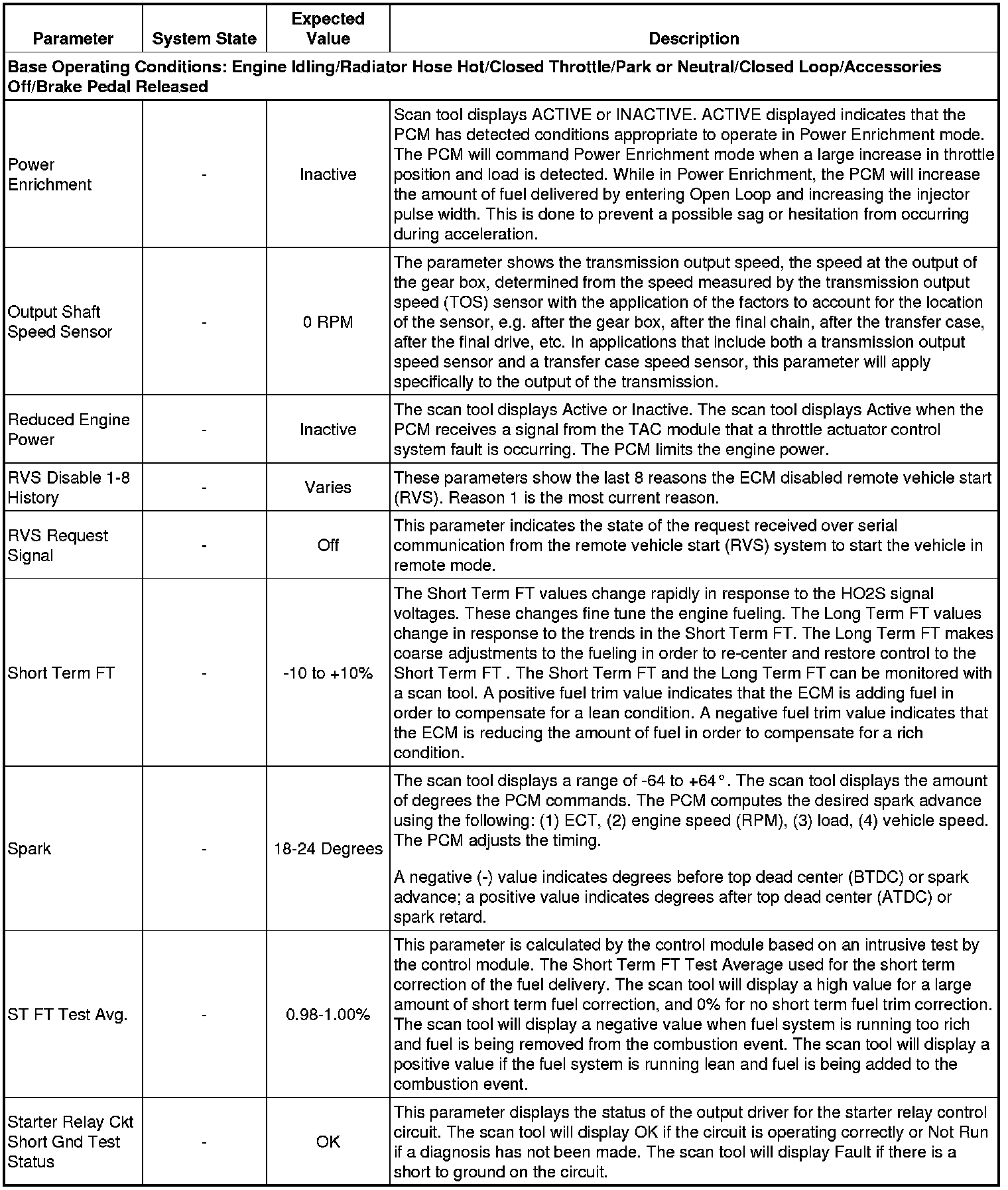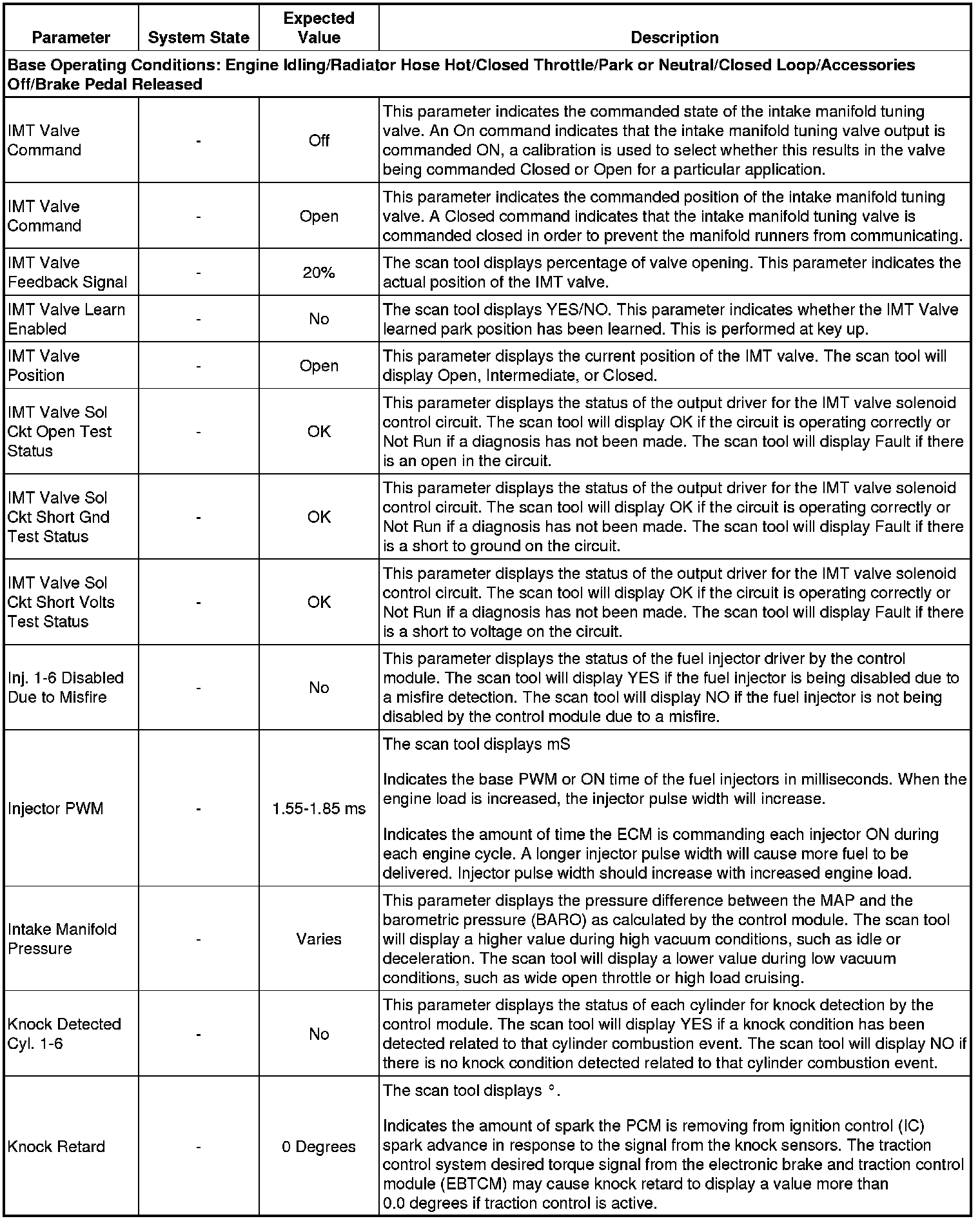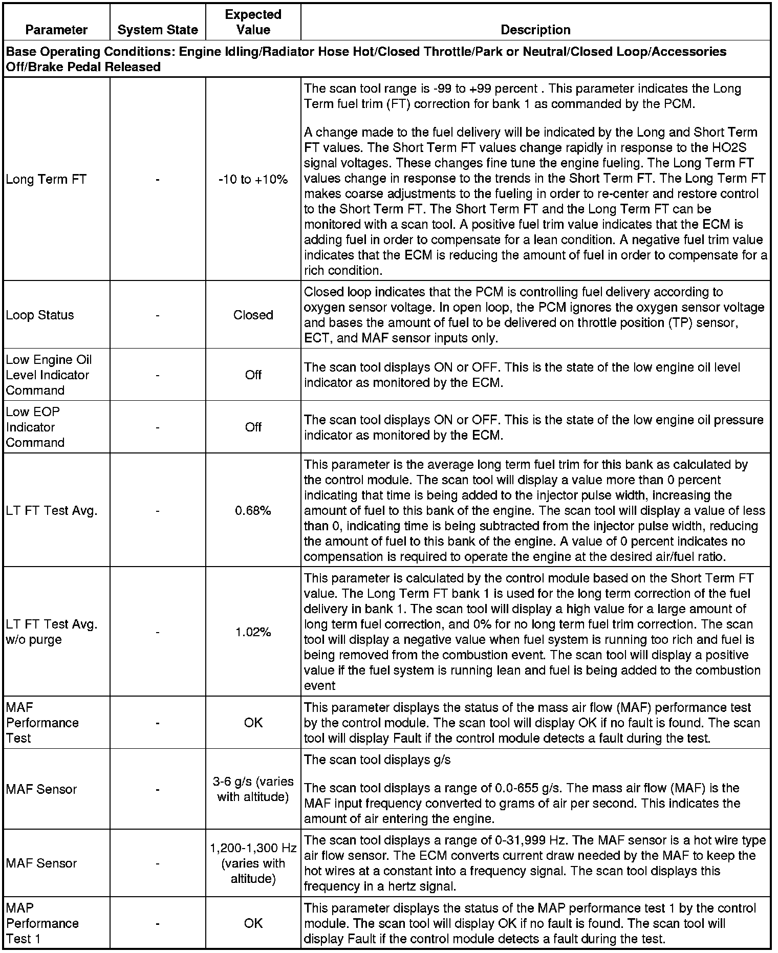 The scan tool values from a properly running engine may be used for comparison with the engine you are diagnosing. The Engine Scan Tool Data List represents values that would be seen on a normally running engine.