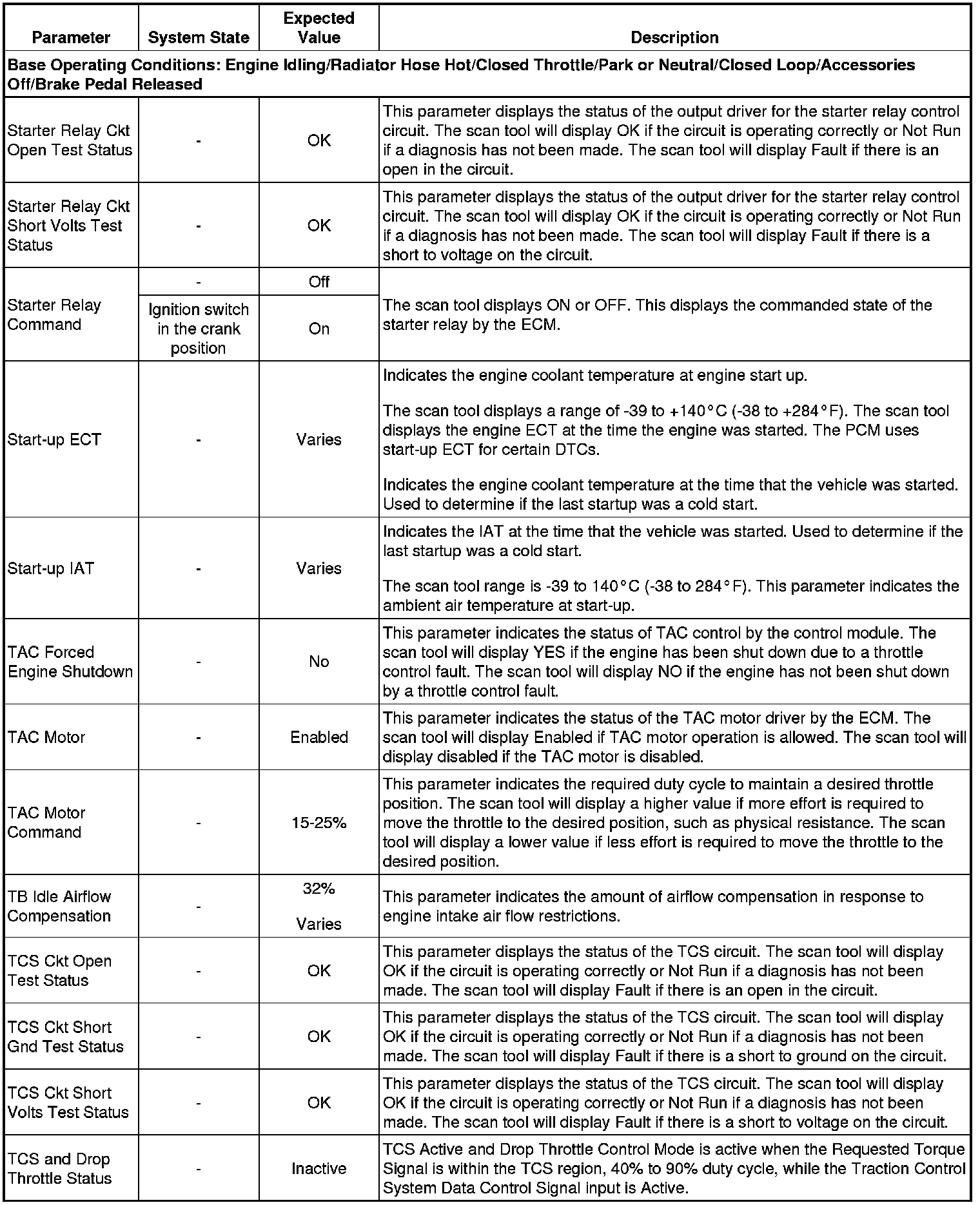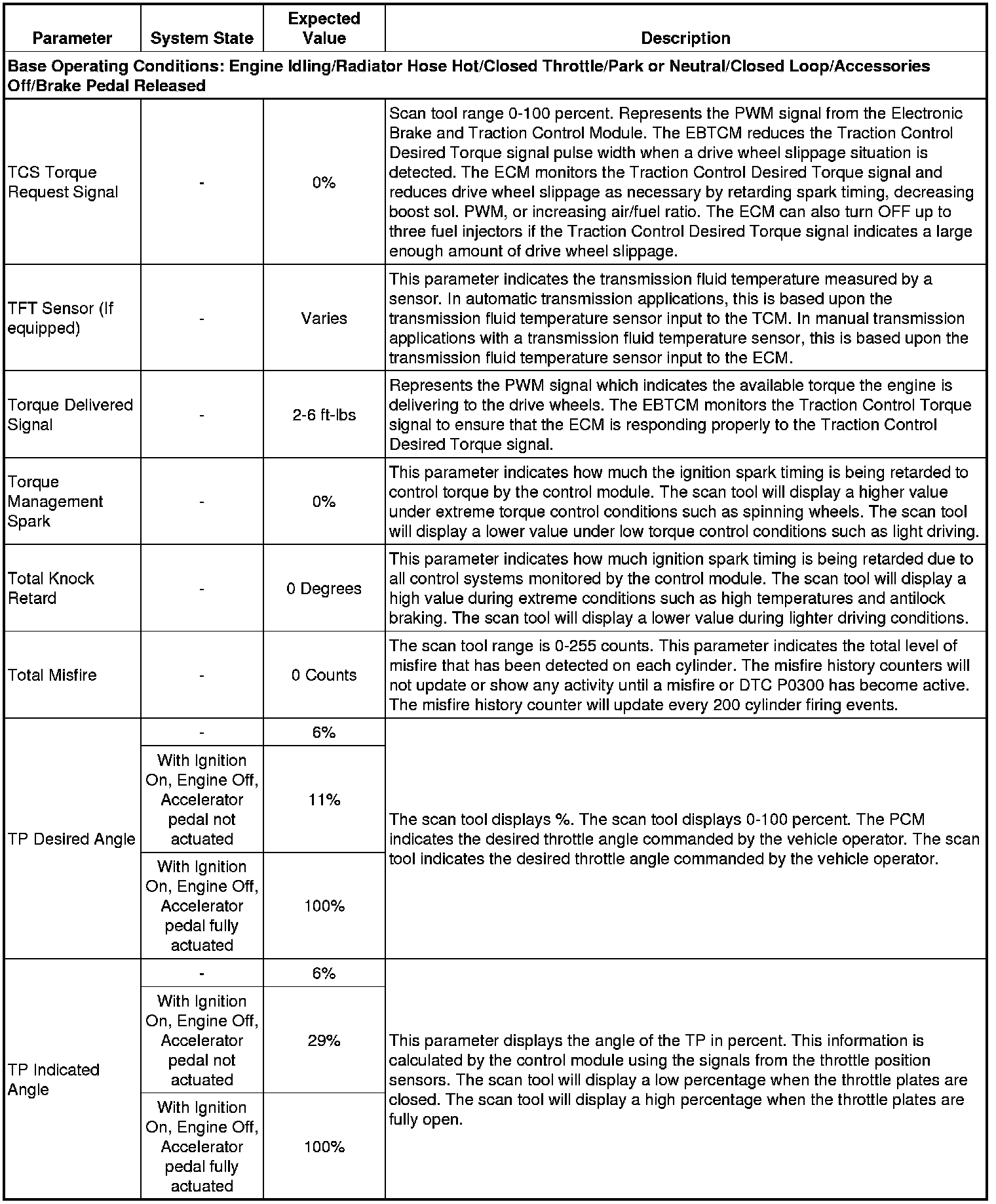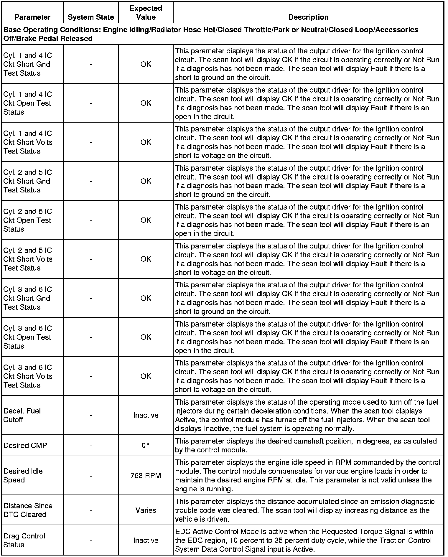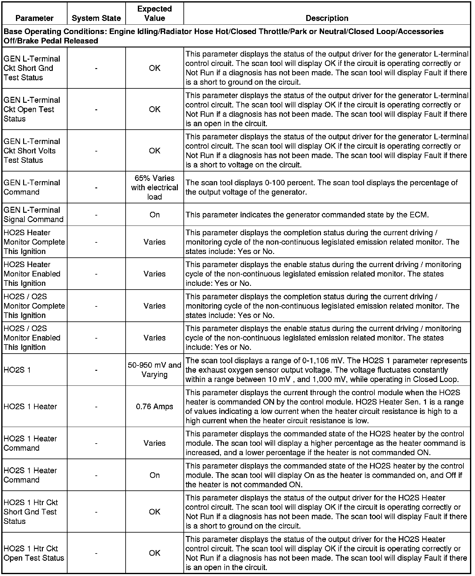 The scan tool values from a properly running engine may be used for comparison with the engine you are diagnosing. The Engine Scan Tool Data List represents values that would be seen on a normally running engine.