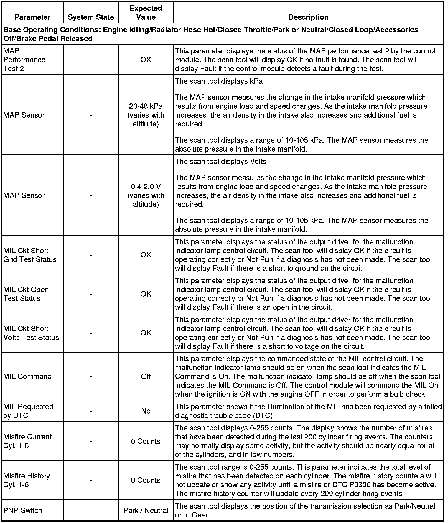 Only the parameters listed below are referenced in this service manual for use in diagnosis. If all values are within the typical range described below, refer to Symptoms - Engine Controls Symptoms - Engine Controls for diagnosis.