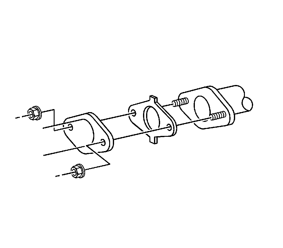 6. Gently pull back the catalytic converter and muffler assembly until the converter can be installed onto the exhaust manifold studs.