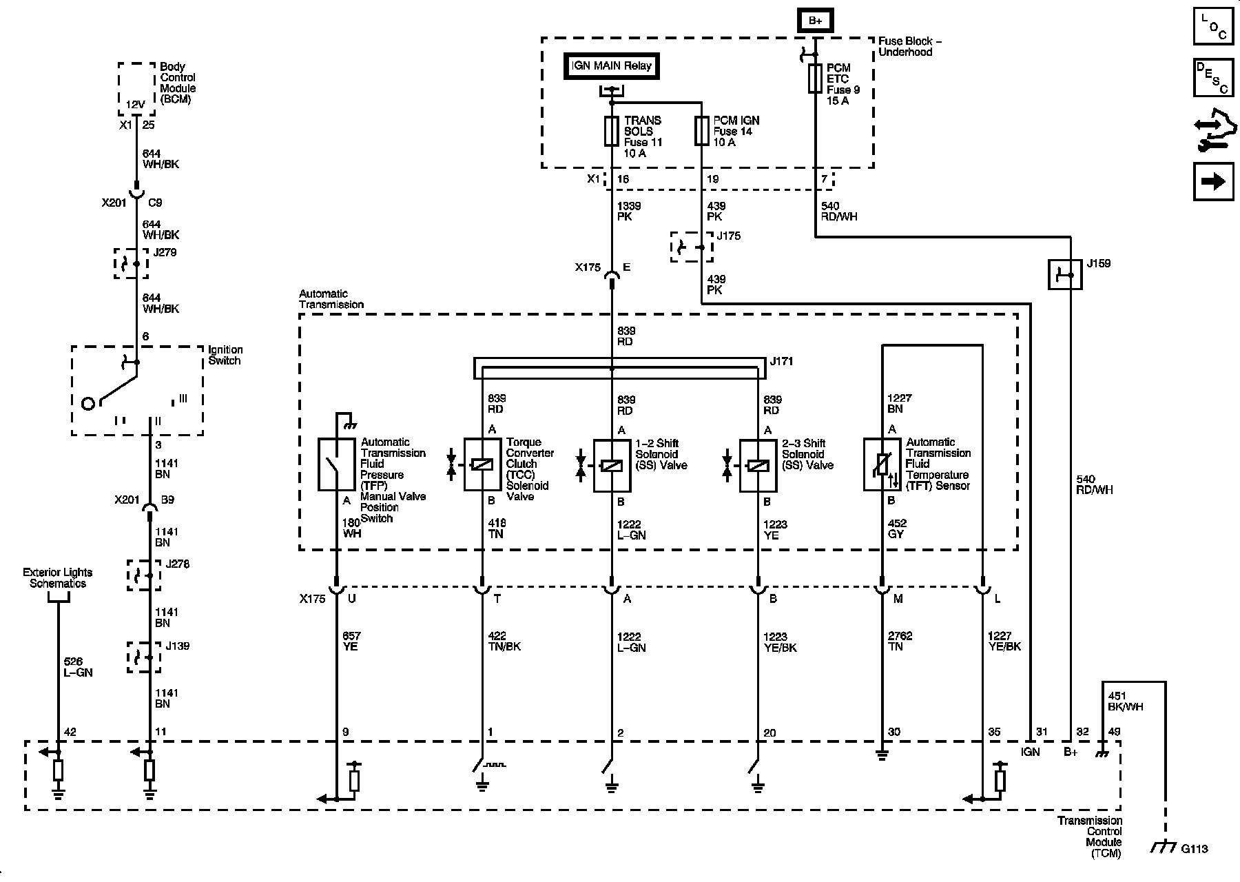 Ground, Power, Shift Solenoids, Stop Lamp Switch, TCC, and TFT