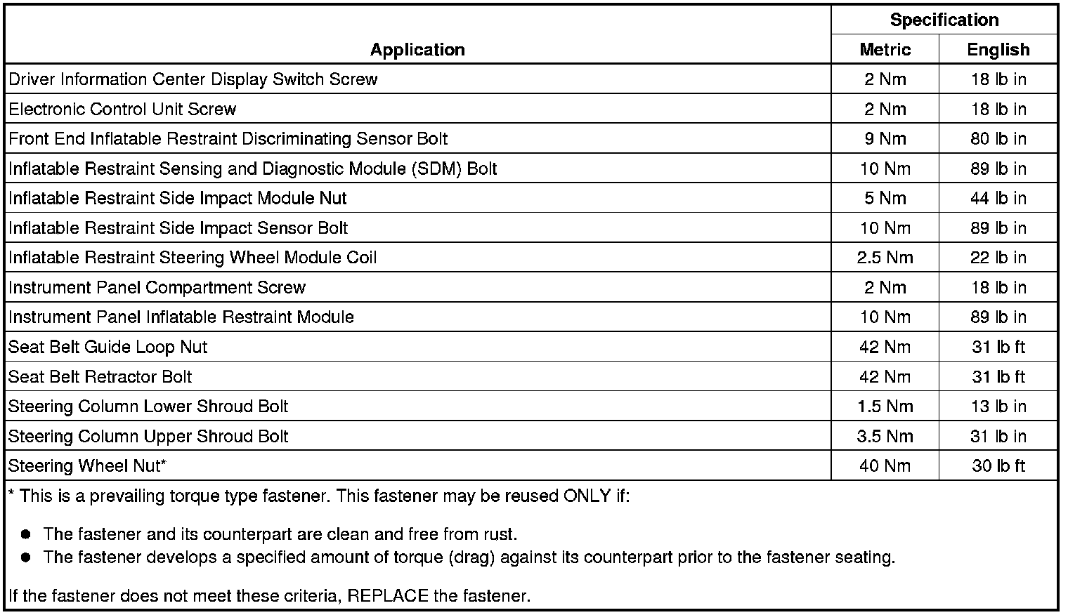 Fastener Tightening Specifications