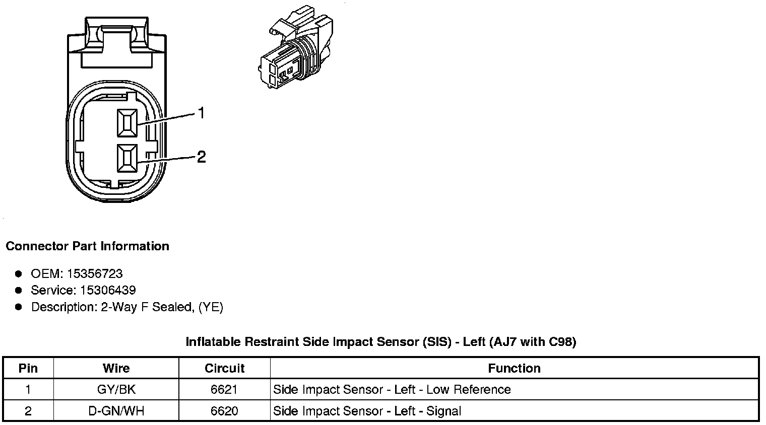 Inflatable Restraint Side Impact Sensor (SIS) - Left (AJ7 with C98)