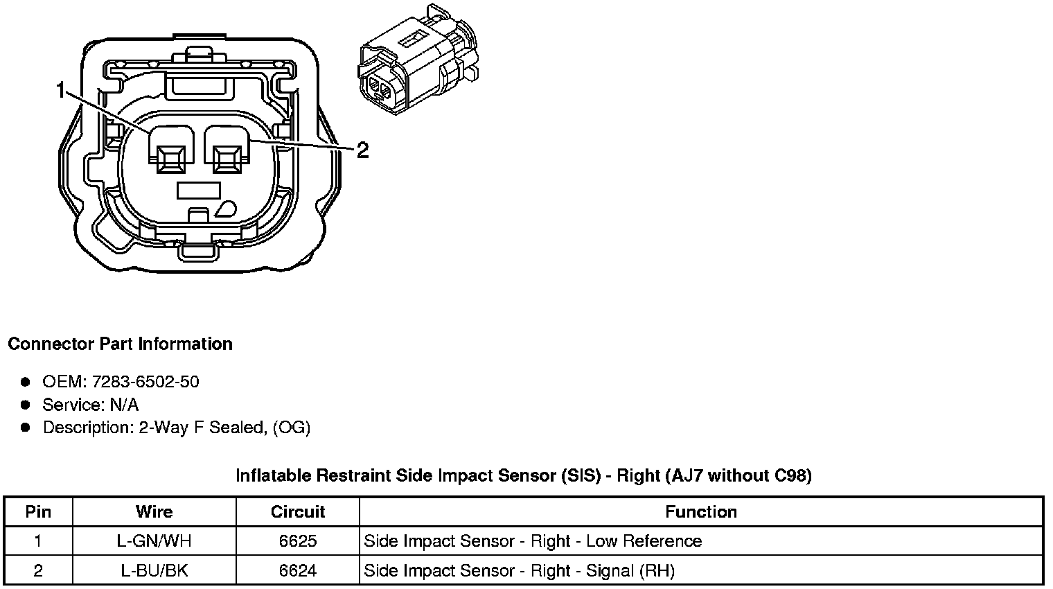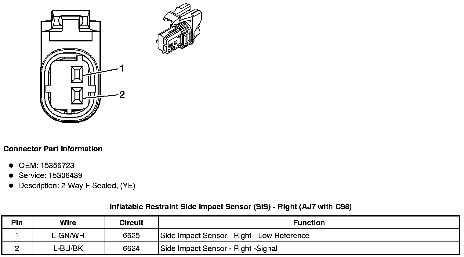 Inflatable Restraint Side Impact Sensor (SIS) - Right (AJ7 with C98)