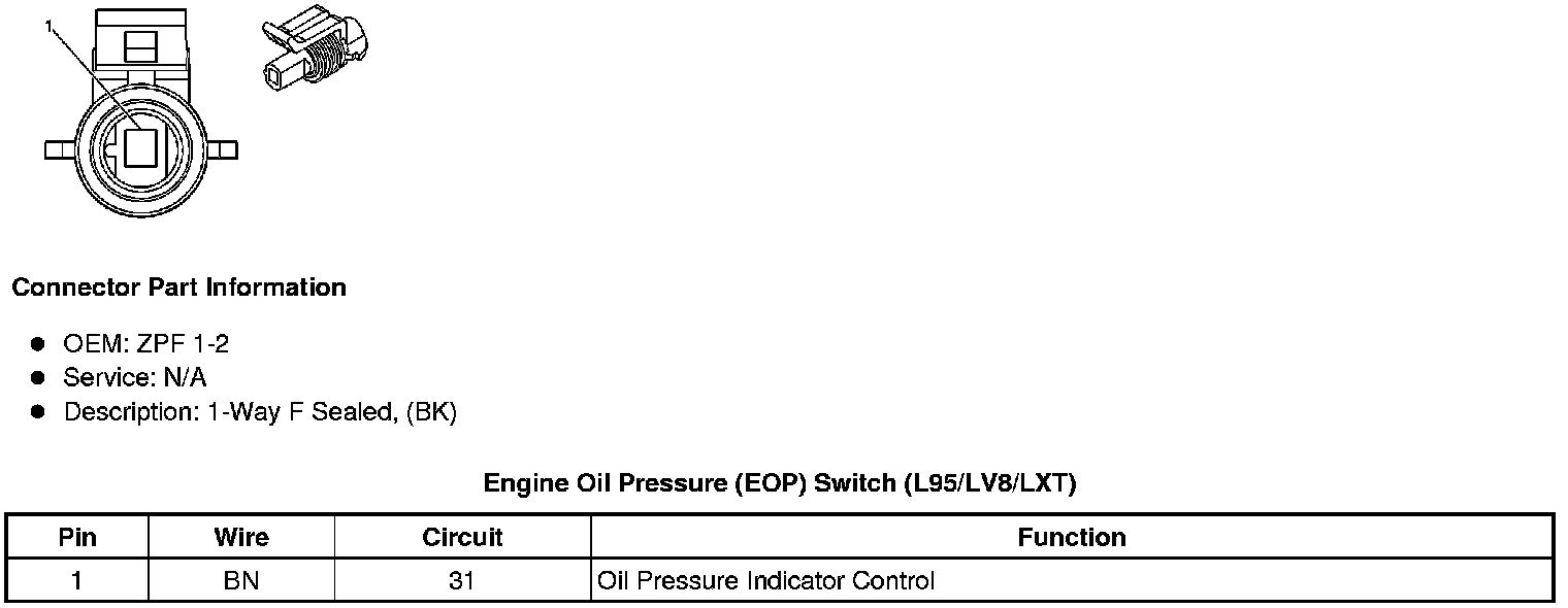 Engine Oil Pressure (EOP) Switch (L95/LV8/LXT)
