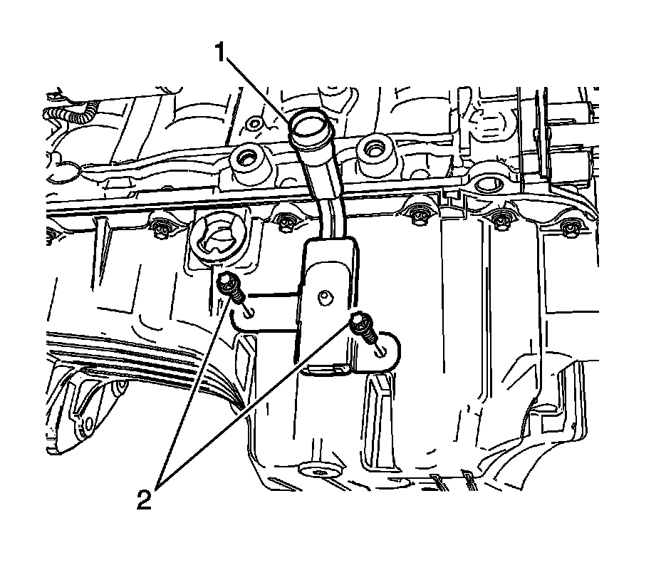 2. Remove the oil pan heater mounting bolts (2).