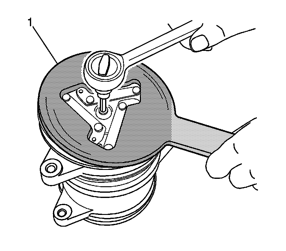 4. Use the DW-610-010 clutch hub holding tool (1) to keep the clutch drive assembly from turning.