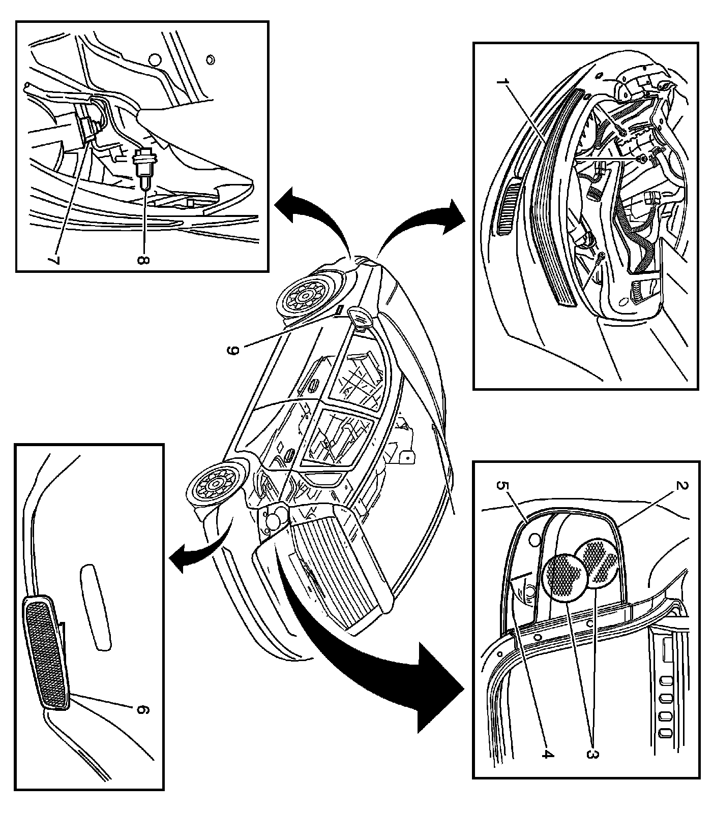 9 - Turn Signal Repeater Lamp (Left Side Shown, Right Side Similar)