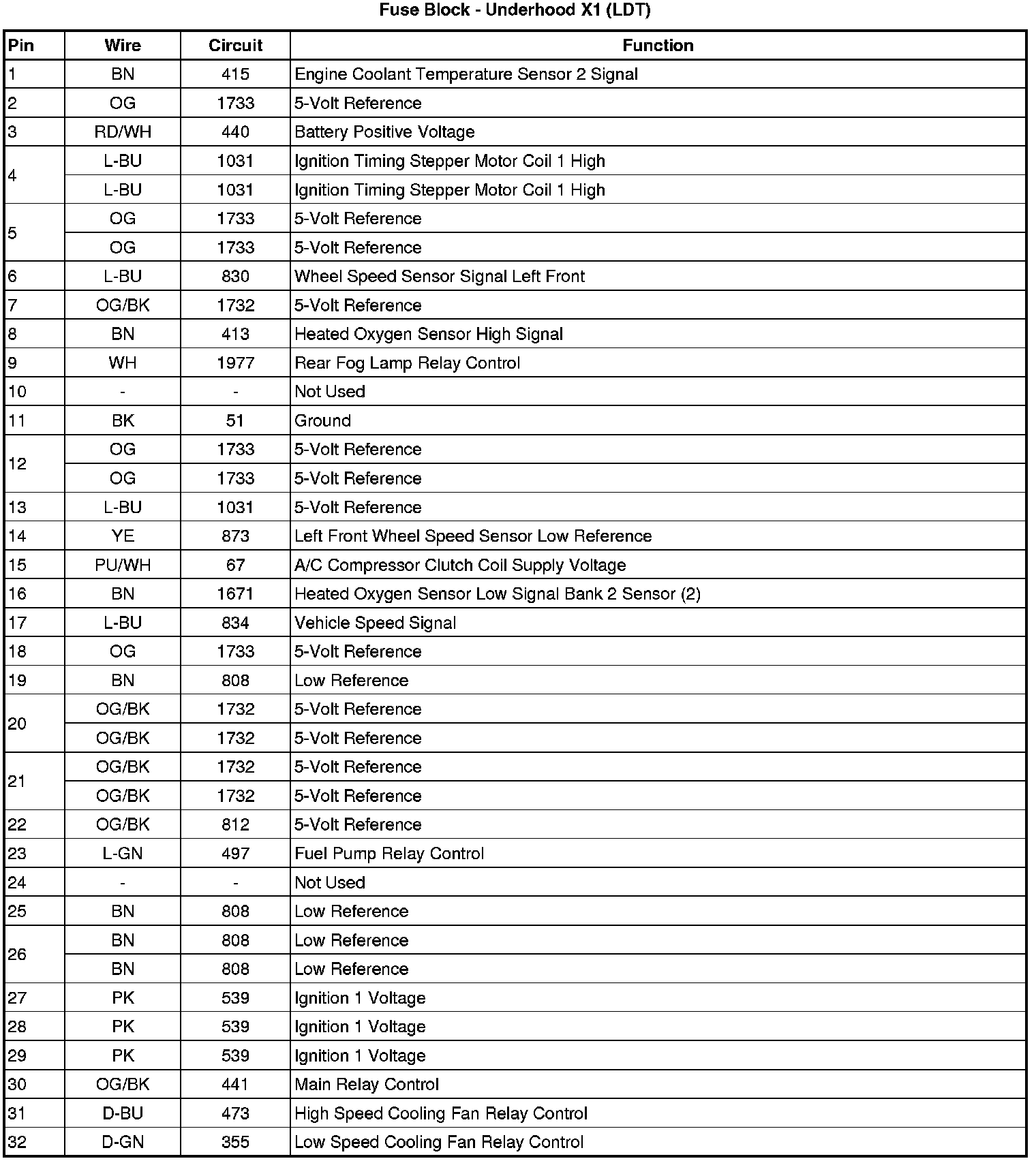 Fuse Block - Underhood X1 (without LDT/LXV)