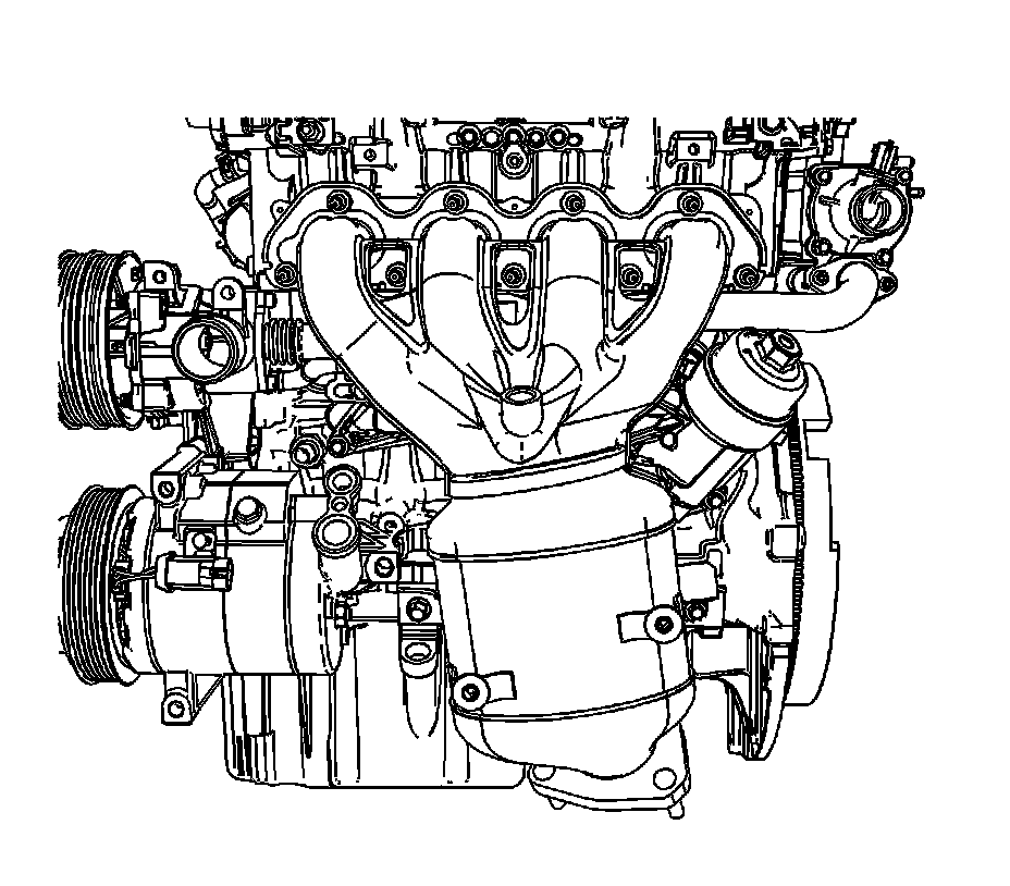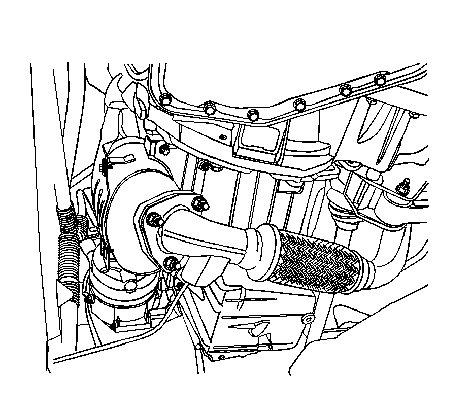 Note: Position the catalytic converter onto the exhaust manifold flange with one upper flange nut.