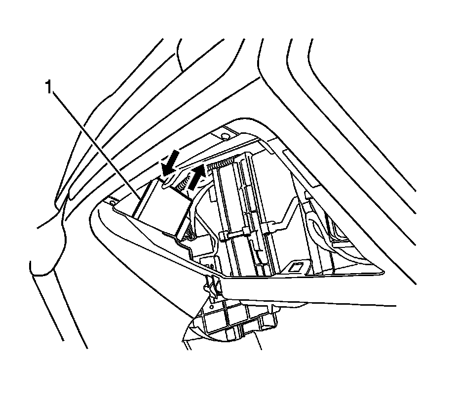 2. Remove the instrument panel storage compartment. Refer to Instrument Panel Storage Compartment Replacement (Instrument Panel Storage Compartment Replacement).